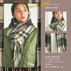 カシミヤタッチ ストール チェック柄 70×200cm ブラウン×ベージュ