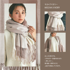 カシミヤタッチ ストール チェック柄 70×200cm モカ×アイボリー