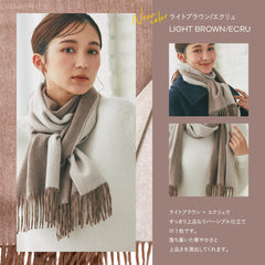 カシミヤ100% リバーシブルマフラー 30×180cm ライトブラウン/エクリュ
