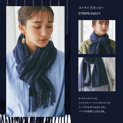 カシミヤ100% リバーシブルマフラー 30×180cm ストライプ/ネイビー