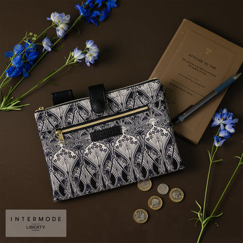 【NEW】リバティプリント 手帳型マルチポーチ #187a Ianthe(アイアンシ) ブラック