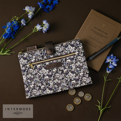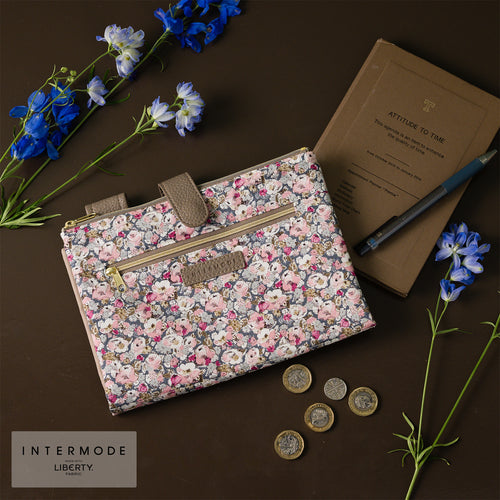 【NEW】リバティプリント 手帳型マルチポーチ #187e Leila(レイラ) グレー