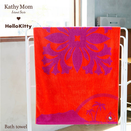 バスタオル ハワイアンキルト柄 ハローキティ&レイ(キャシーマム × ハローキティ) プルメリア アイボリー
