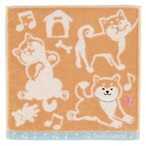 【NEW】婦人タオルハンカチ 柴犬&蝶々 #367a オレンジ