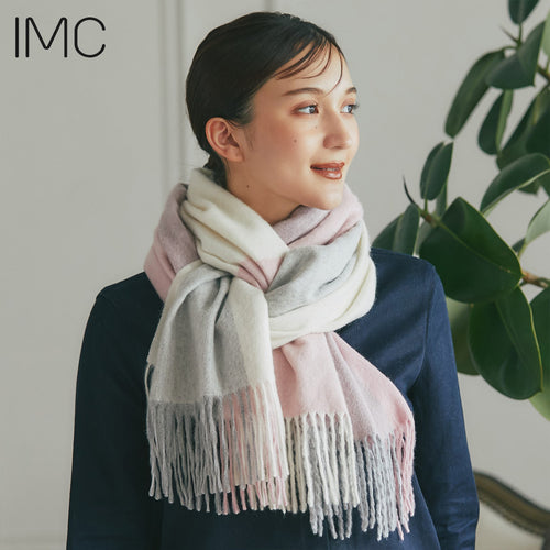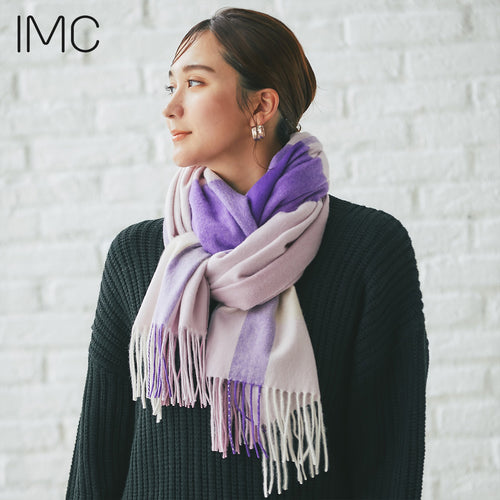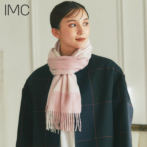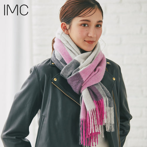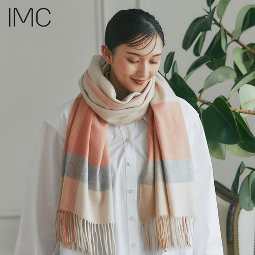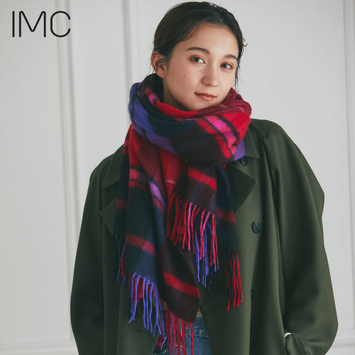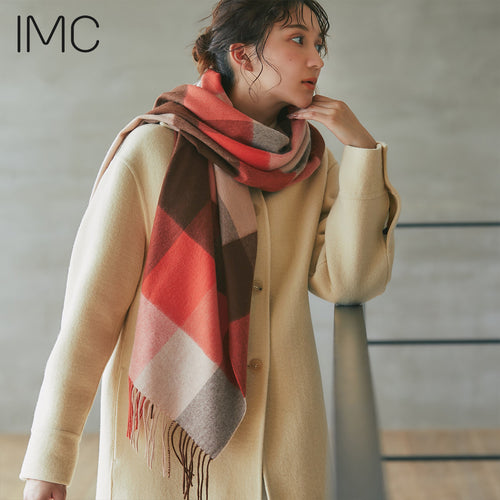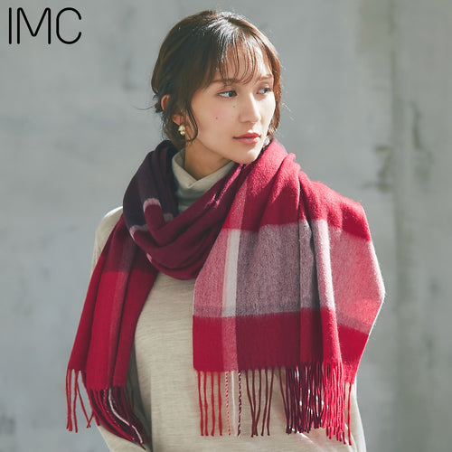 【NEW】洗えるカシミヤ ブロックチェックマフラー レッド