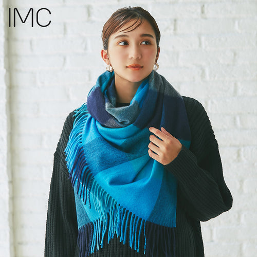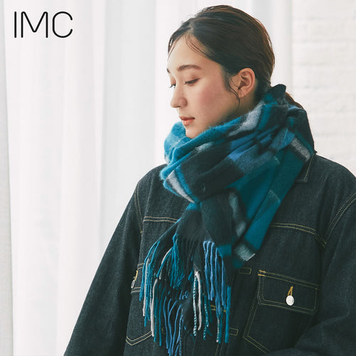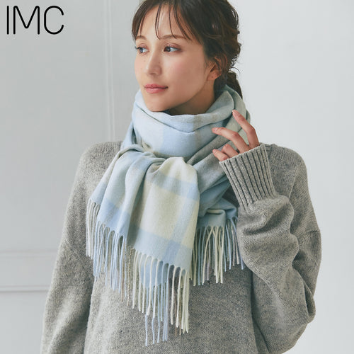 【NEW】洗えるカシミヤ ブロックチェックマフラー グリーン