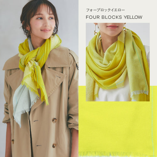 エアリーカシミヤストール フォーブロックイエロー