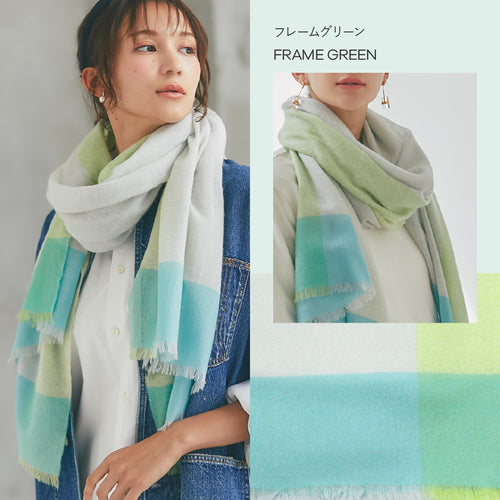 エアリーカシミヤストール フレームグリーン