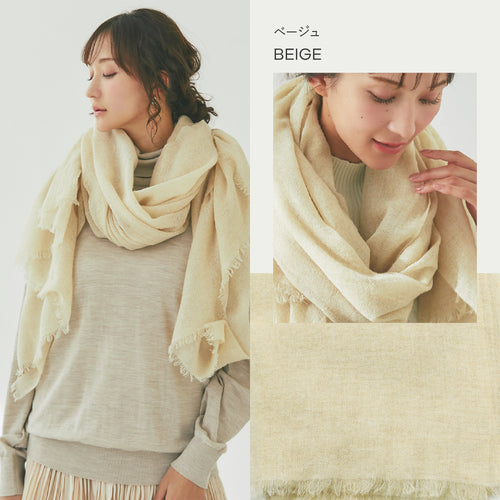 光が透けるほどふんわり織られたガーゼ調のカシミヤストールです。