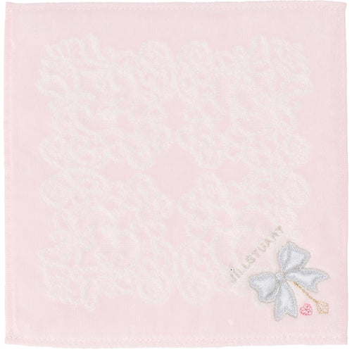 ミニタオルハンカチ リボンアップリケ #092a ピンク