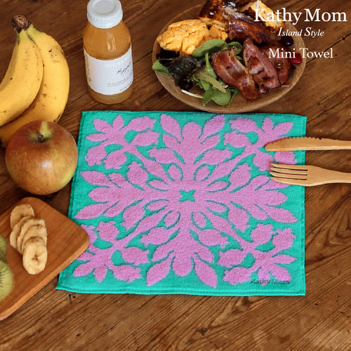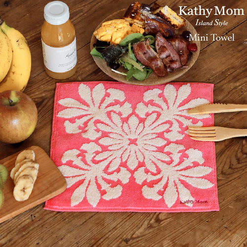 ミニタオル ハワイアンキルト柄 リノシリーズ #238b プアケニケニサーモンピンク