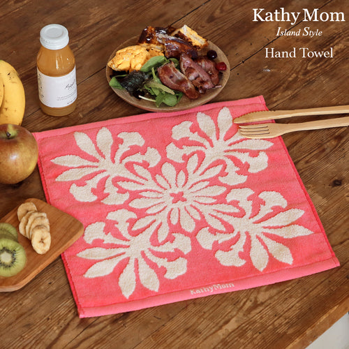 ハンドタオル ハワイアンキルト柄 リノシリーズ #861b プアケニケニサーモンピンク