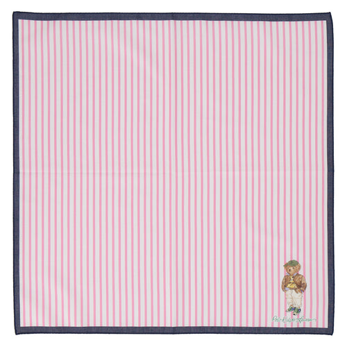 【NEW】婦人プリントハンカチ #120a ポロベア ストライプ ピンク