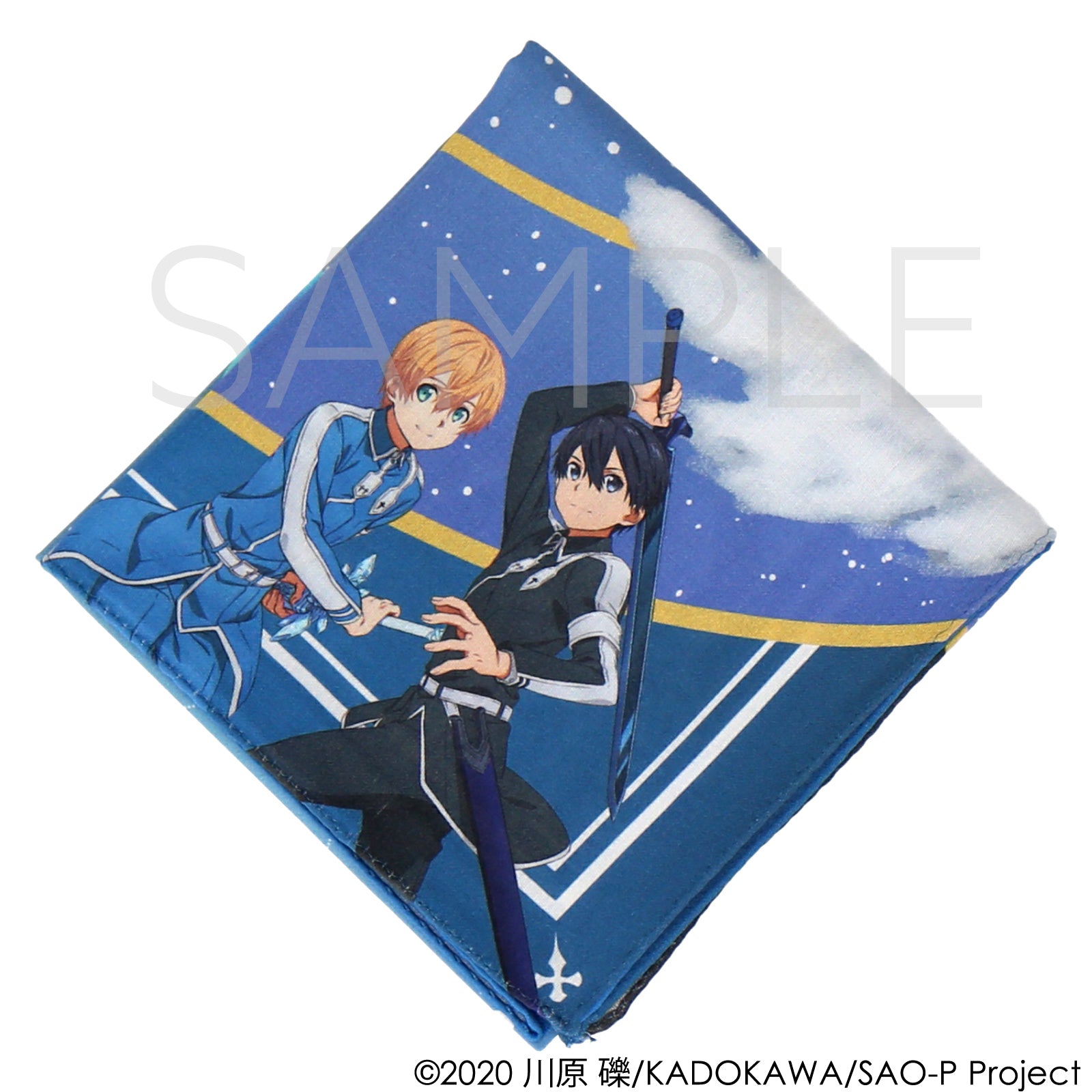 キリトとユージオをイメージしたプリントハンカチ。 ハンカチとしてはもちろん、ファッションアイテムとしてバッグや髪につけたりお部屋に飾ったりと、様々な使い方を楽しめる一枚です。