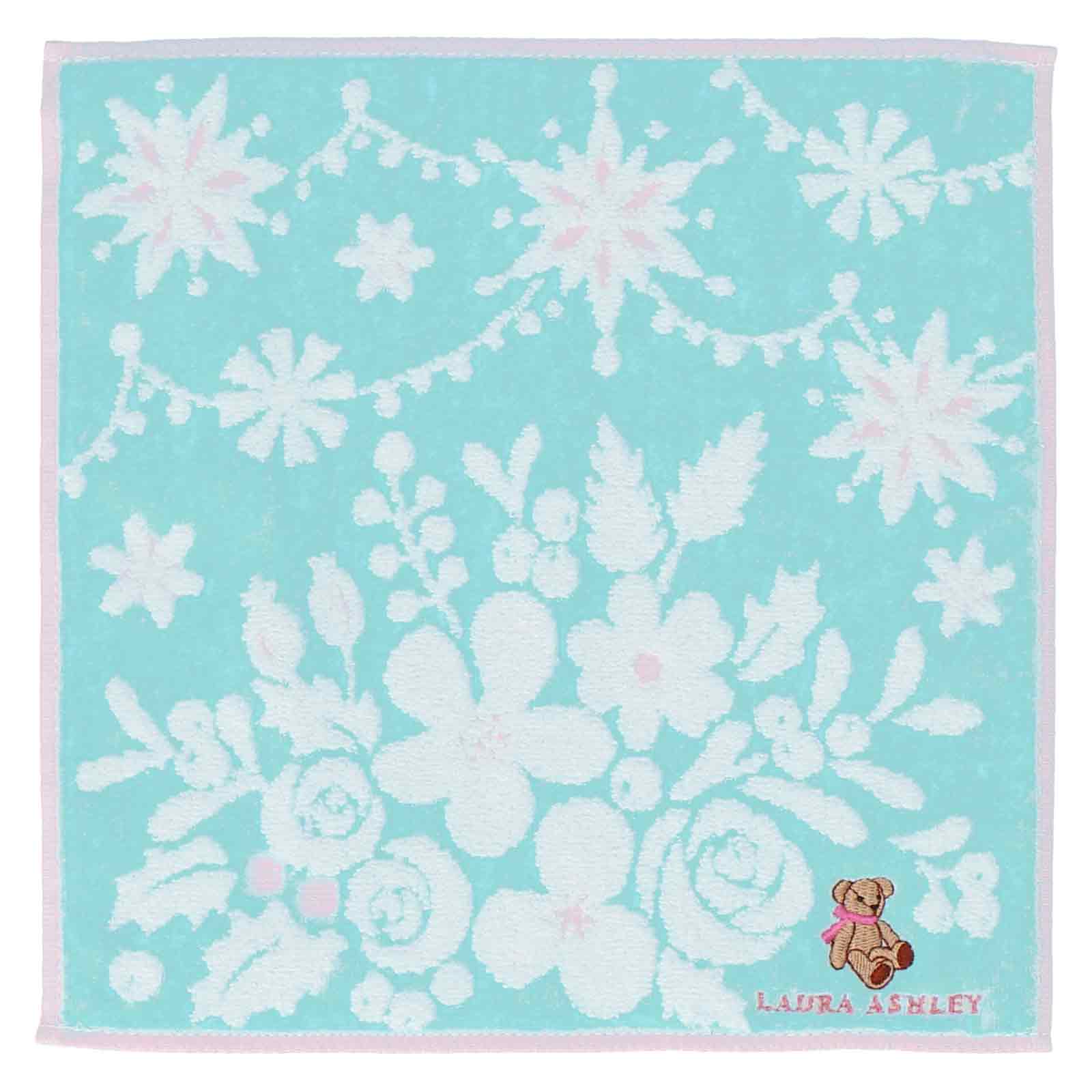 花柄とイルミネーションが組み合わさったホリデーシーズンにぴったりなタオルハンカチ。 可愛らしいベアの刺繍も施され、プレゼントにもおすすです。