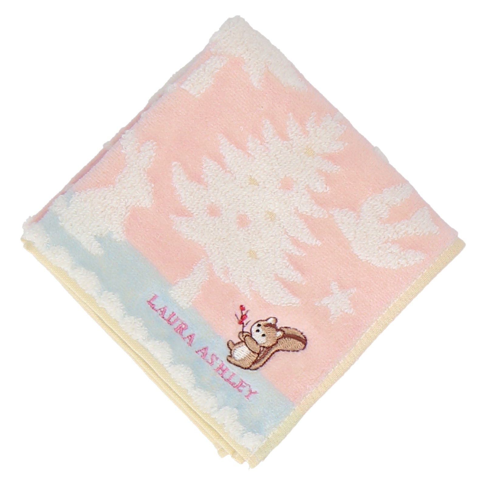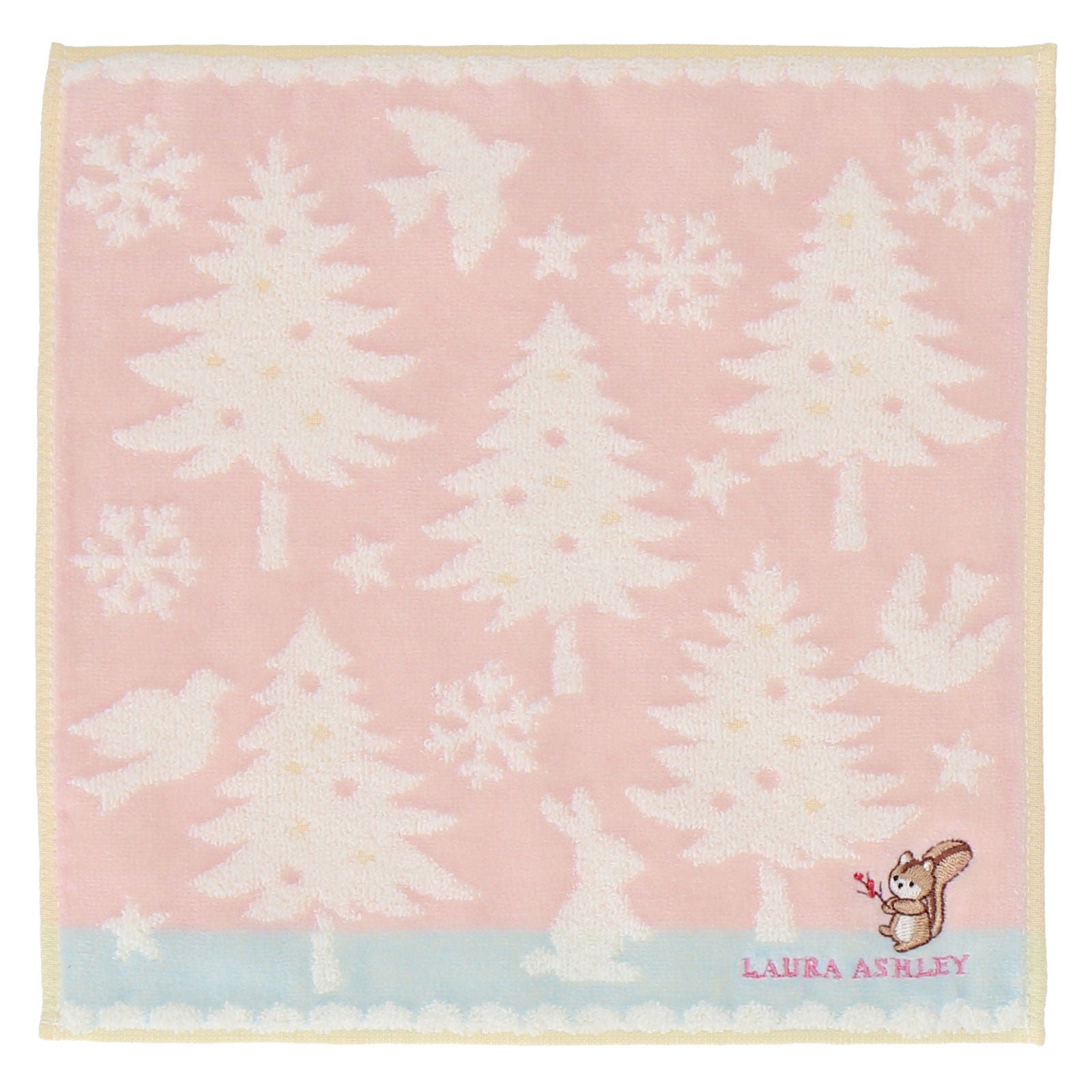 ツリーと雪の結晶が散らばったホリデーシーズンにぴったりなタオルハンカチ。 可愛らしいリスの刺繍も施され、プレゼントにもおすすです。