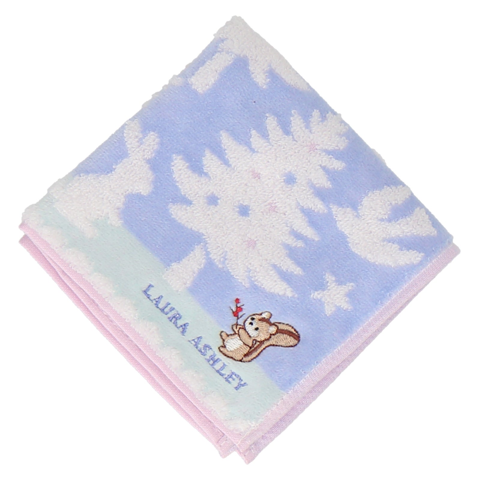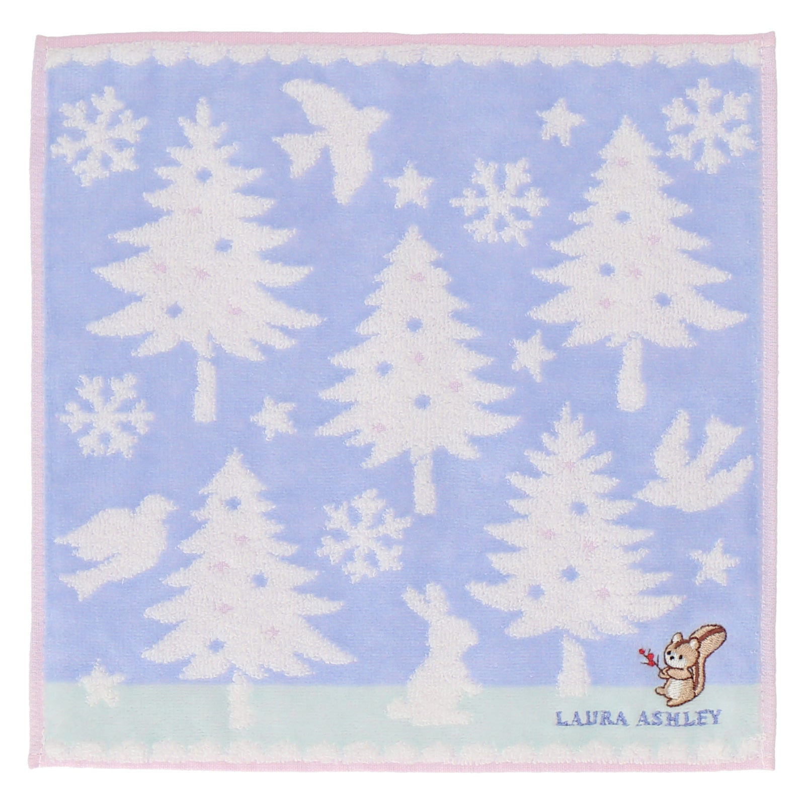 ツリーと雪の結晶が散らばったホリデーシーズンにぴったりなタオルハンカチ。 可愛らしいリスの刺繍も施され、プレゼントにもおすすです。