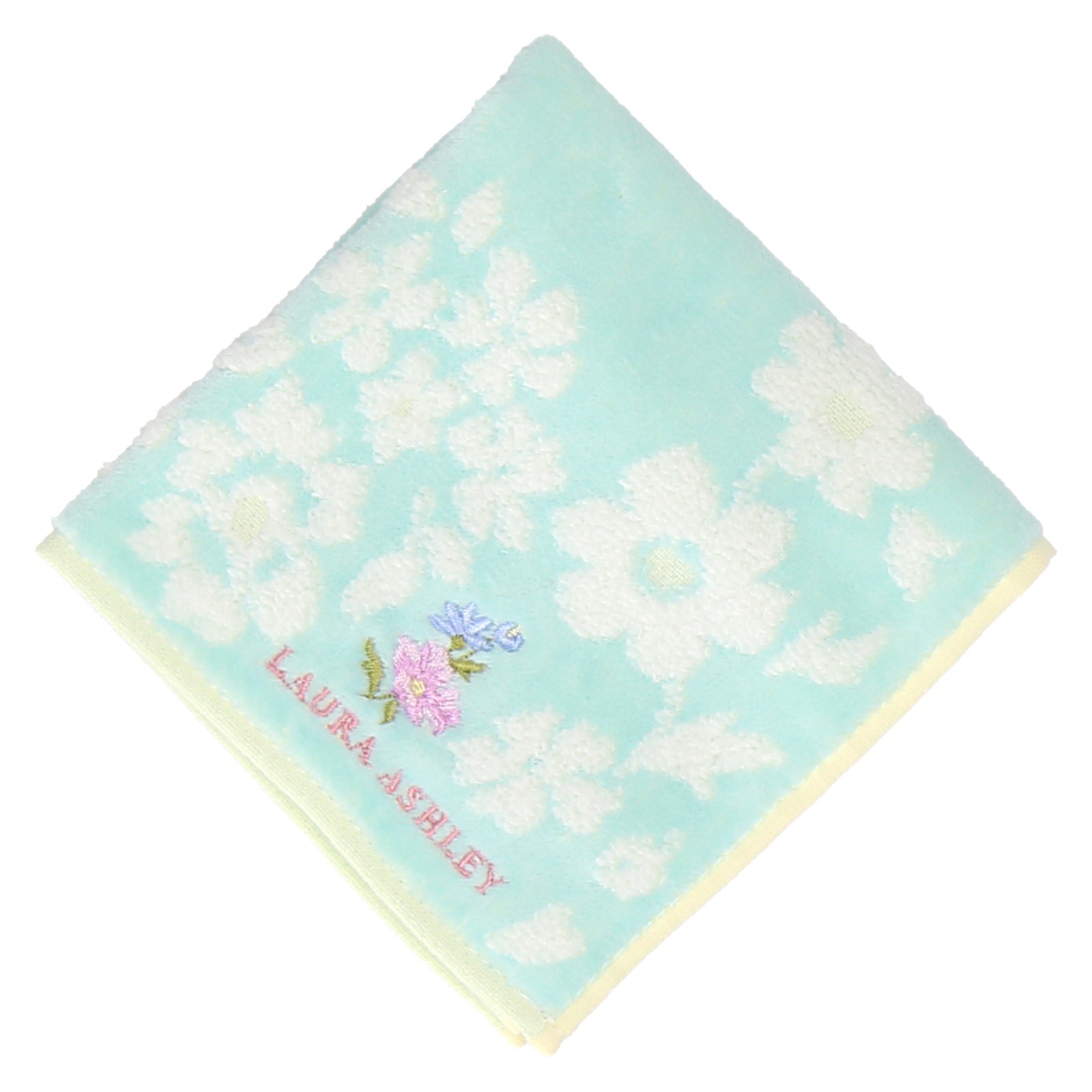 サークル状に並んだ花柄が上品なタオルハンカチ。