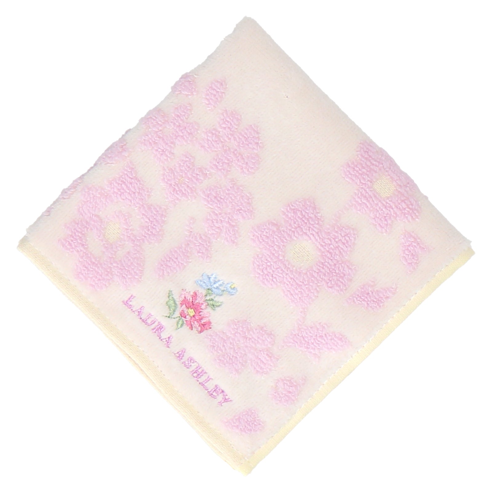 サークル状に並んだ花柄が上品なタオルハンカチ。