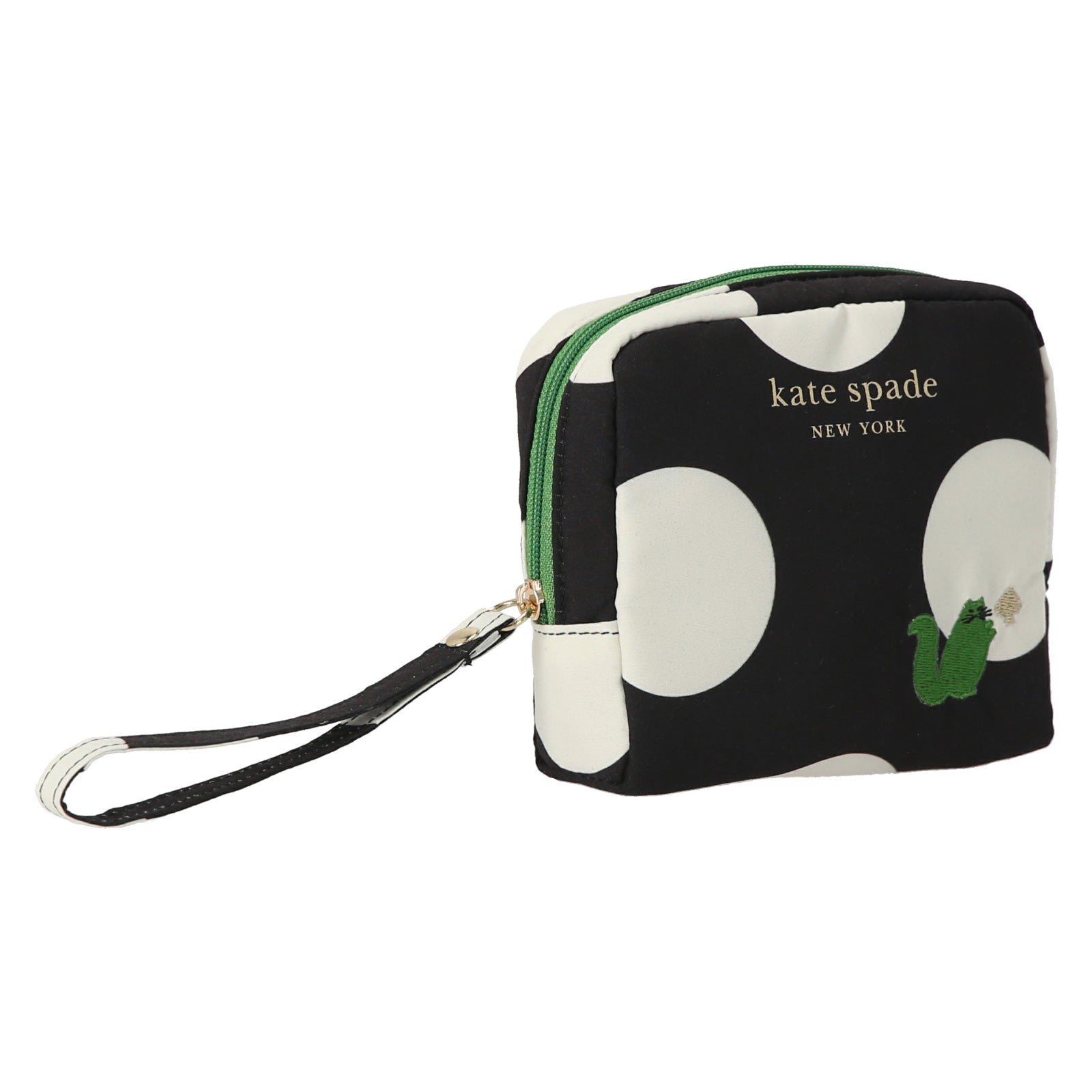 ハンカチなど小物を収納できるカジュアルなドット柄のポーチ。普段使いからトラベルまで幅広く活躍しそうです。ネコの刺しゅうがとってもキュート。清潔にお使いいただけるよう裏生地には抗菌防臭加工を施しております。ご自身はもちろん、ちょっとしたギフトととしてもおすすめです。