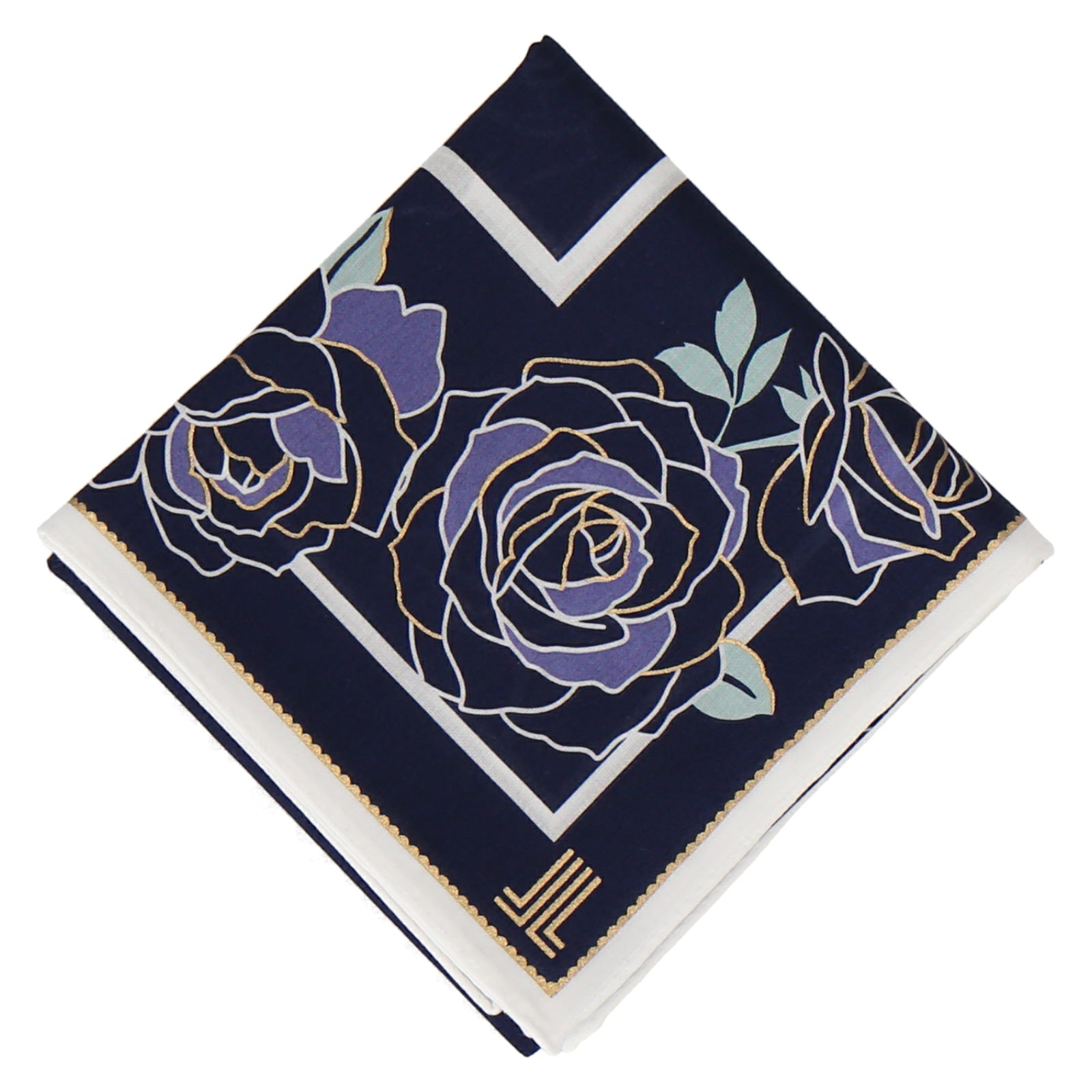 バラモチーフが全面にちりばめられたスタイリッシュなハンカチ。 58cmの大判サイズハンカチになります。 使いやすいサイズ感のハンカチは自分用にもギフトとしてもおすすめです。