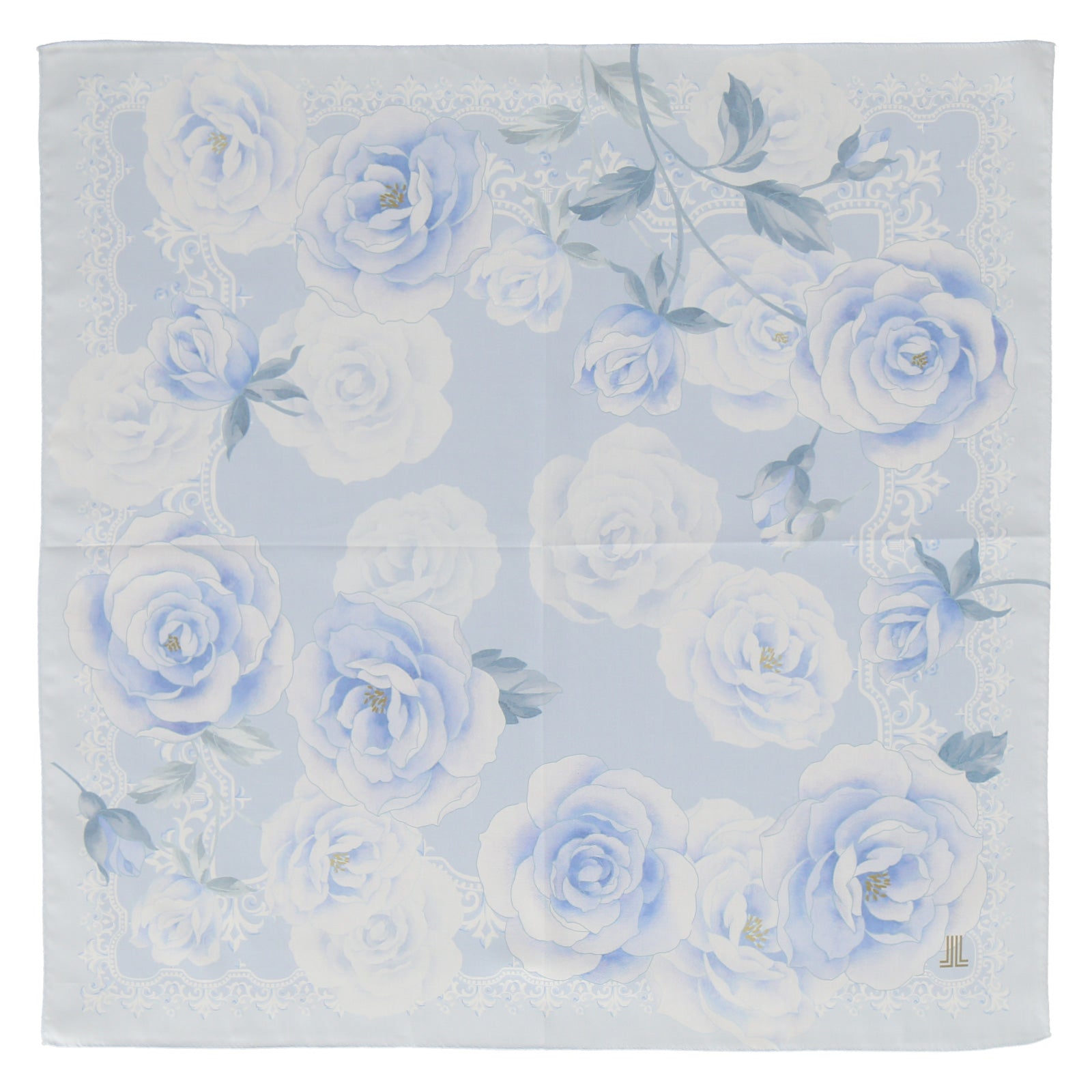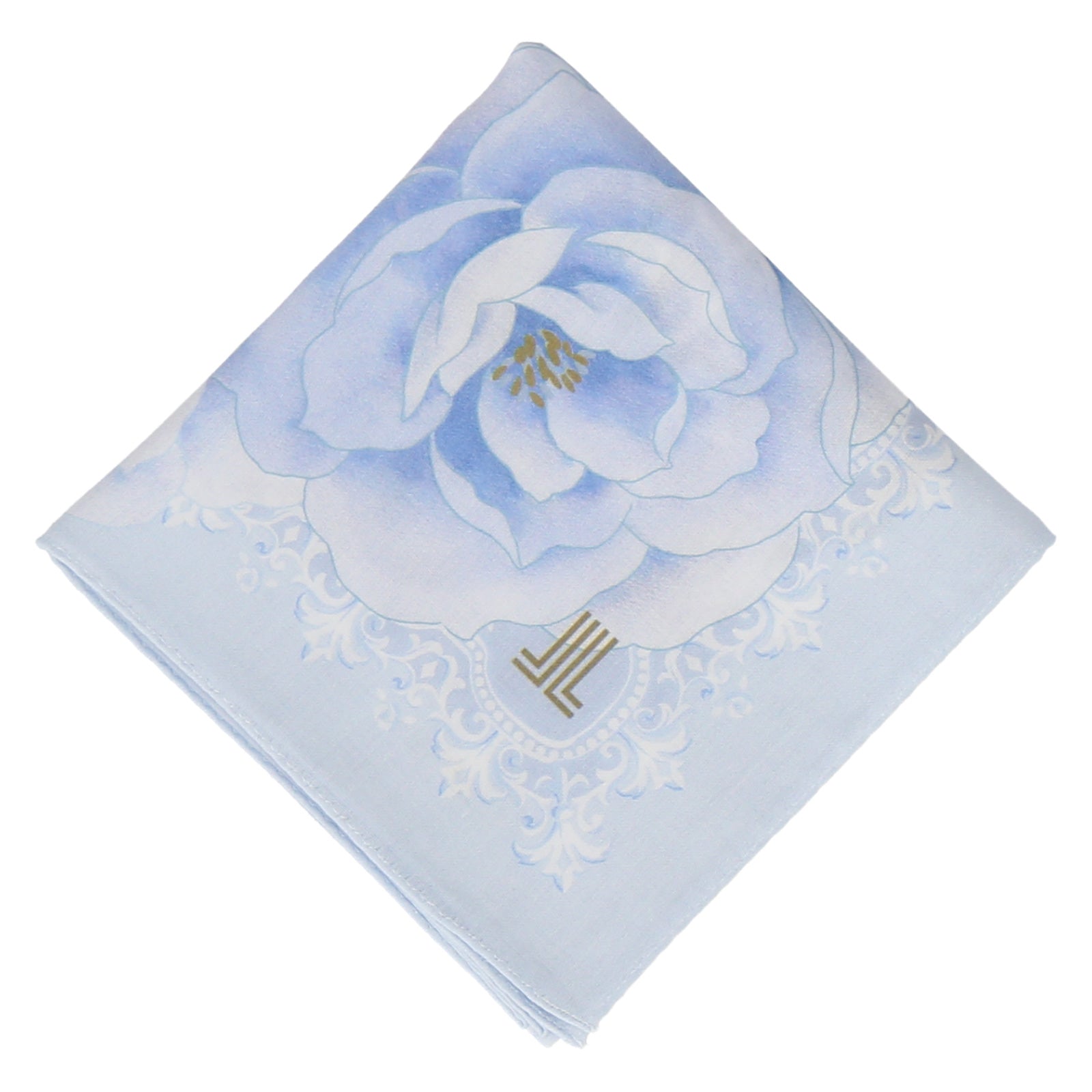 ブランドアイコンであるバラのモチーフを絵画のようにデザインしたハンカチ。 ブルーのグラデーションが印象的な58cmの大判サイズハンカチになります。 使いやすいサイズ感のハンカチは自分用にもギフトとしてもおすすめです。