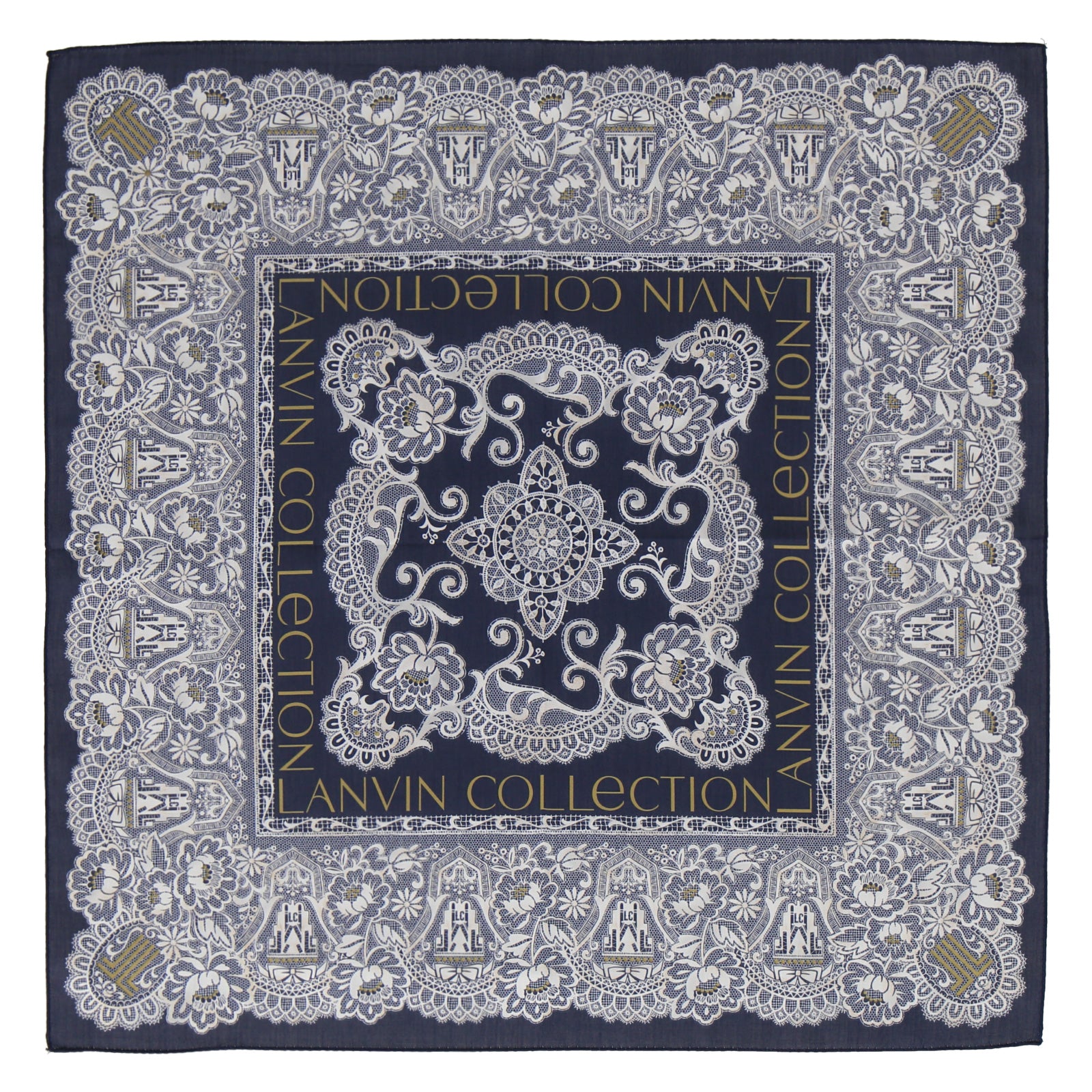 アールデコのモチーフとクラシックなレースデザインが絵画のようなハンカチ。 ブルーのコントラストが印象的な58cmの大判サイズハンカチになります。 使いやすいサイズ感のハンカチは自分用にもギフトとしてもおすすめです。