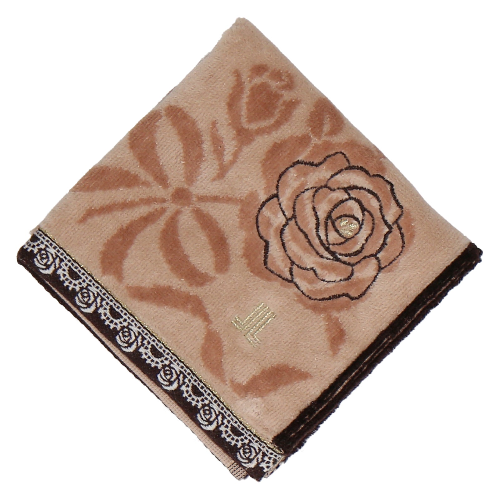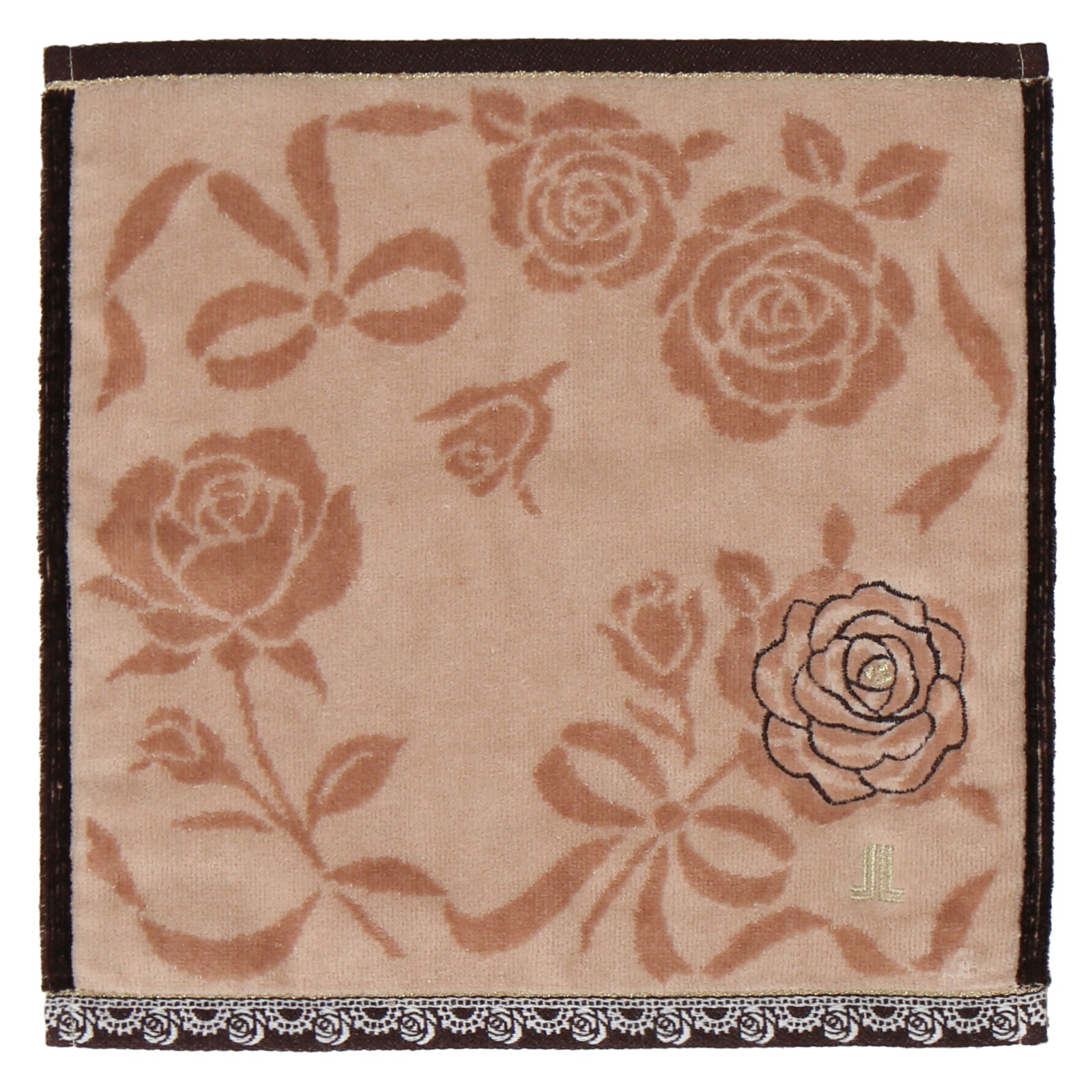 コーナー部分にあるバラの刺繍が印象的なミニタオル。 風合いのいいコットン素材は日常使いにもギフトとしてもおすすめです。