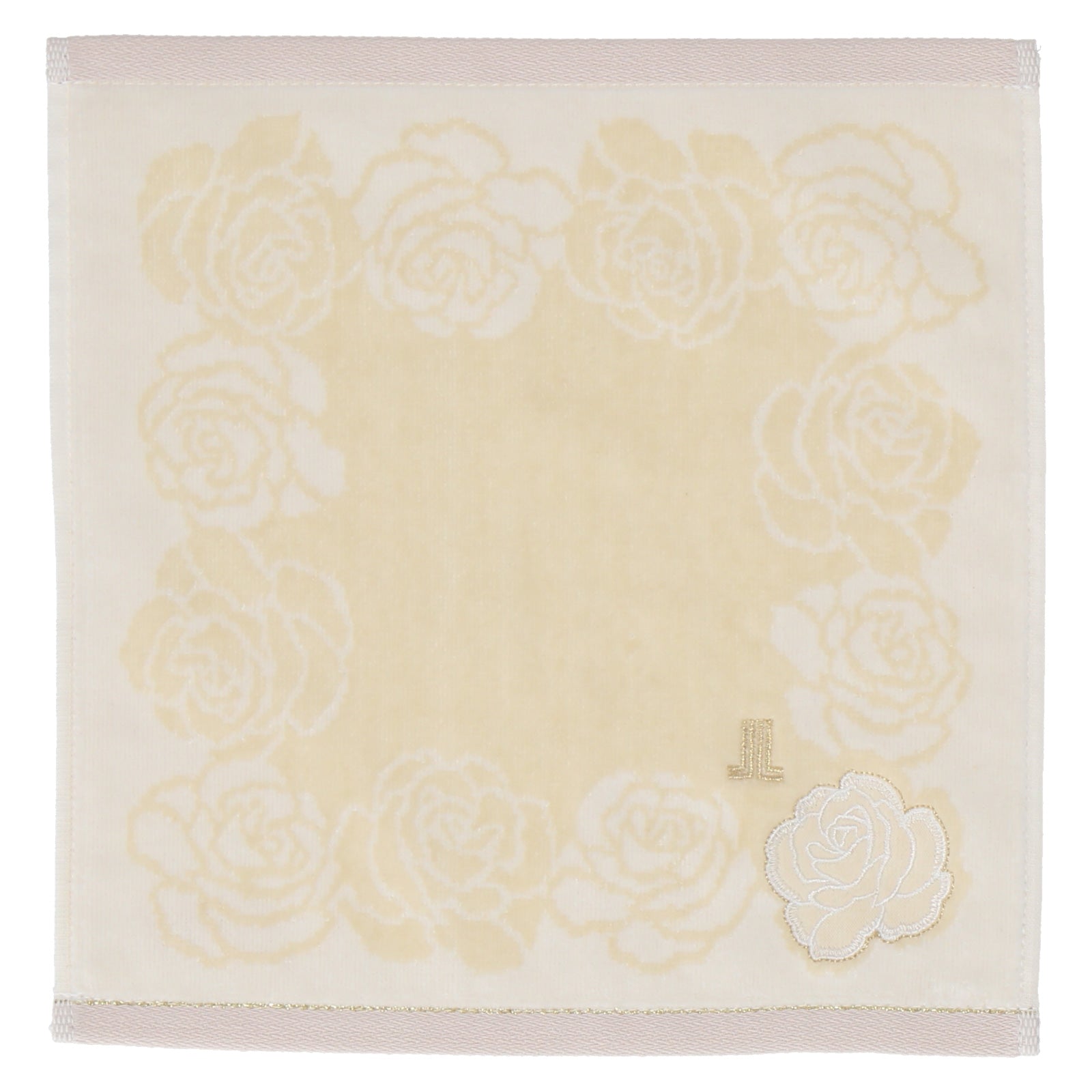 オーガンジーを使用したバラモチーフが華やかで上品な印象的なミニタオル。風合いのいいコットン素材は日常使いにもギフトとしてもおすすめです。