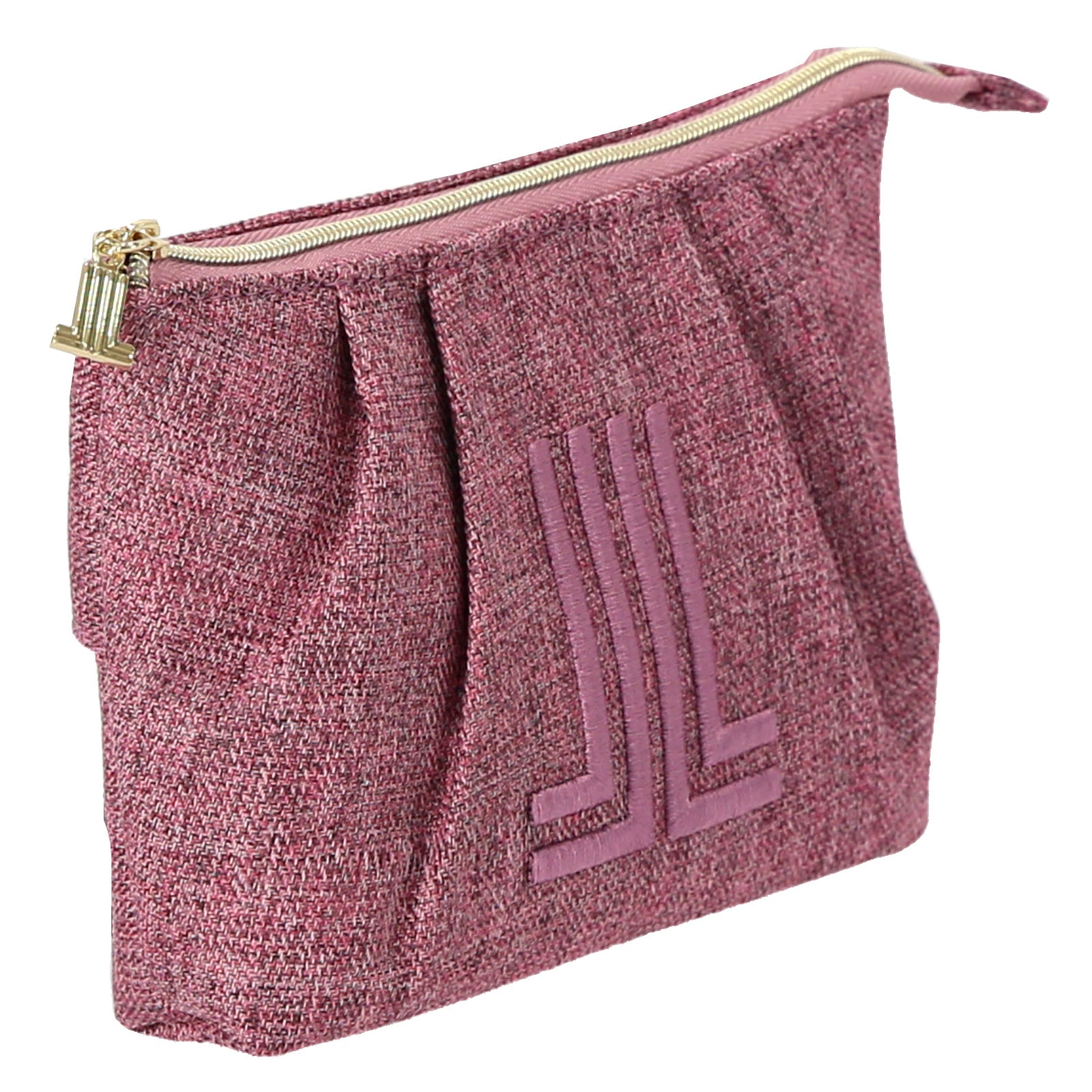 ランバンコレクションのアイコンであるJLマークを存在感のある刺繍で表現した華やかなデザイン。 ツイード風の生地がアクセントになっています。 使いやすいサイズ感と片面にはティッシュが入るポケット付きのポーチはギフトにもおすすめです。