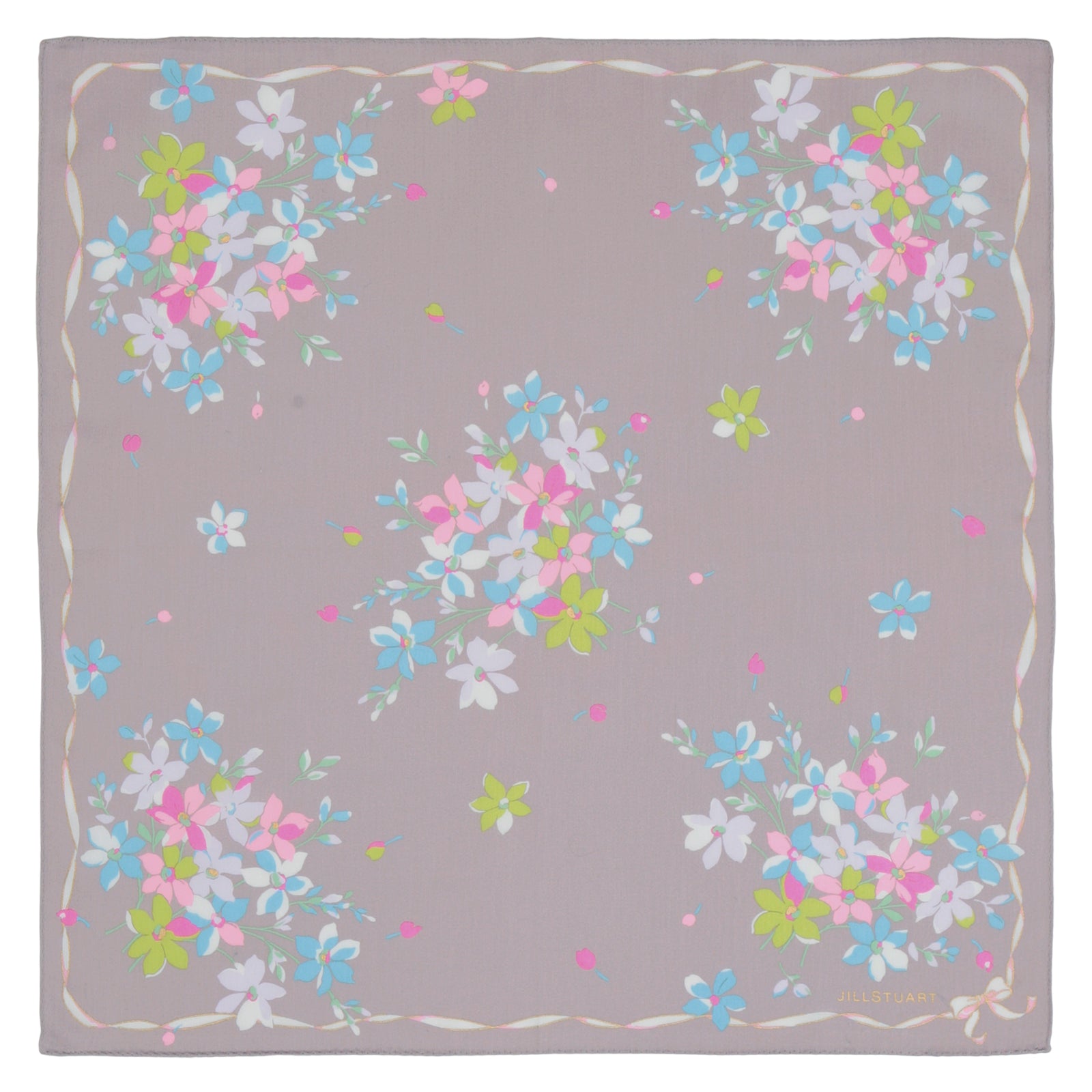 【NEW】プリントハンカチ フラワーブーケ #090c ライトグレー