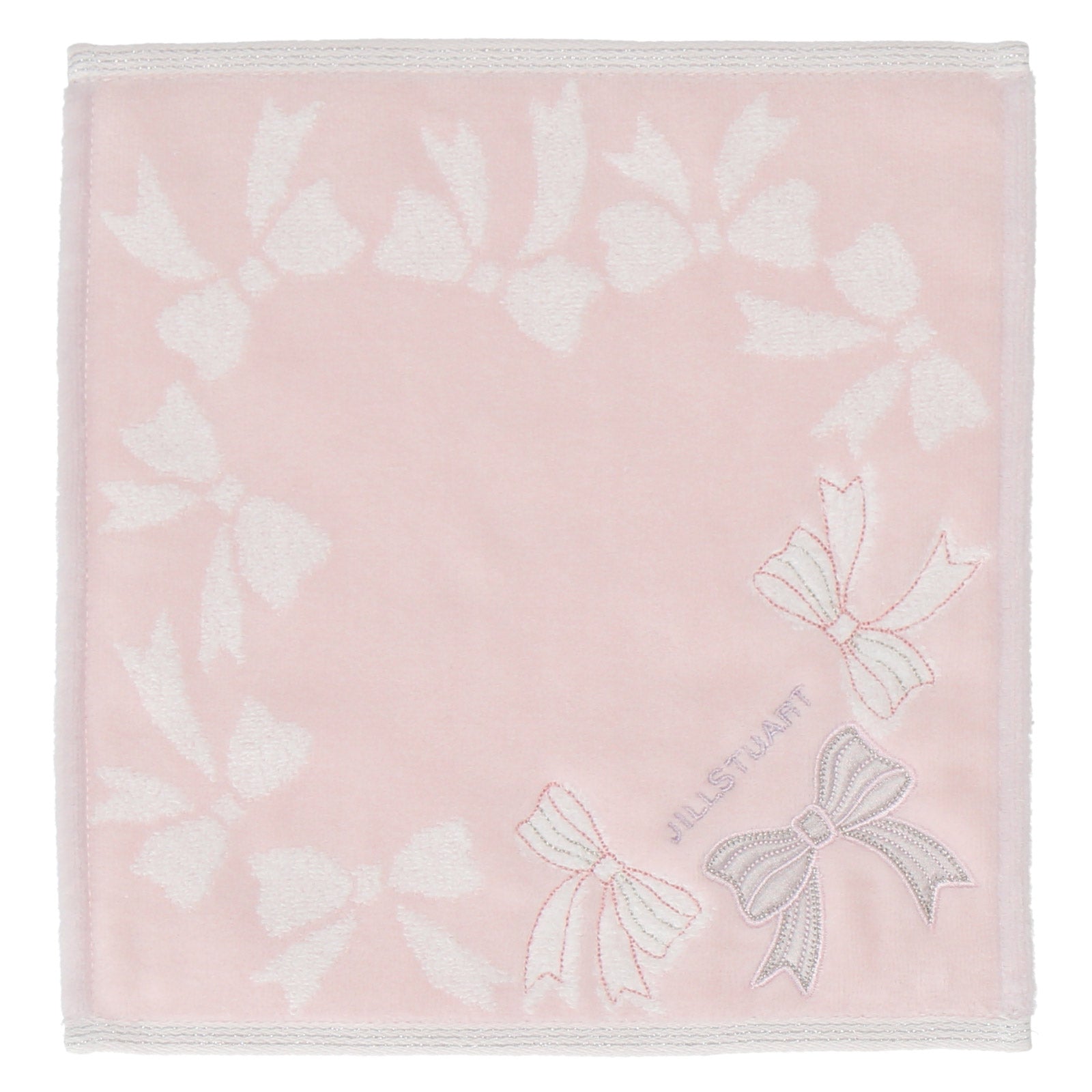 人気のリボン柄をアップリケ刺繍で表現した可愛らしいタオルハンカチ。プレゼントにもおすすめな一枚です。