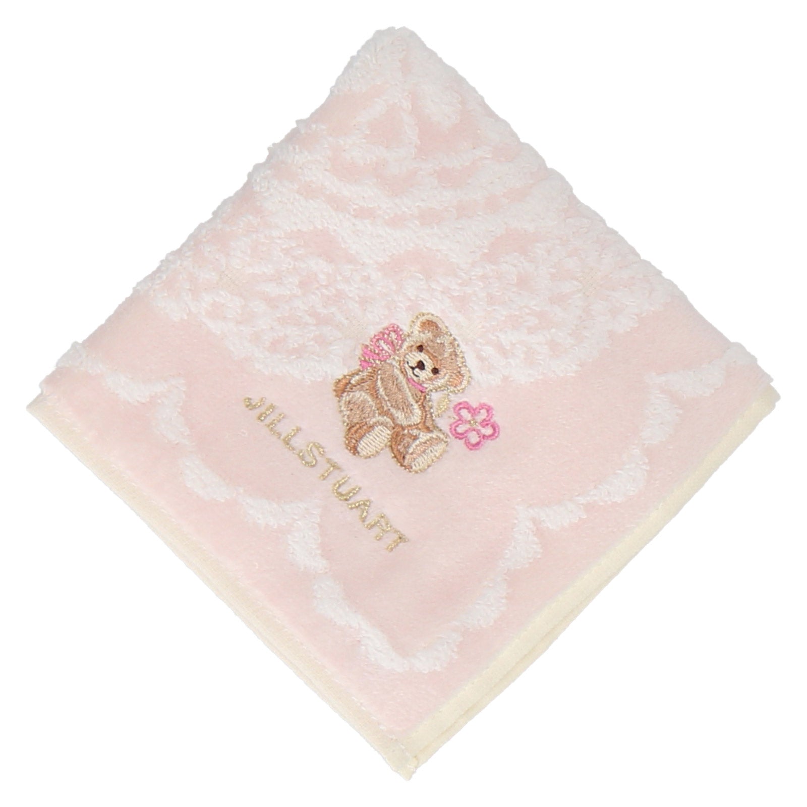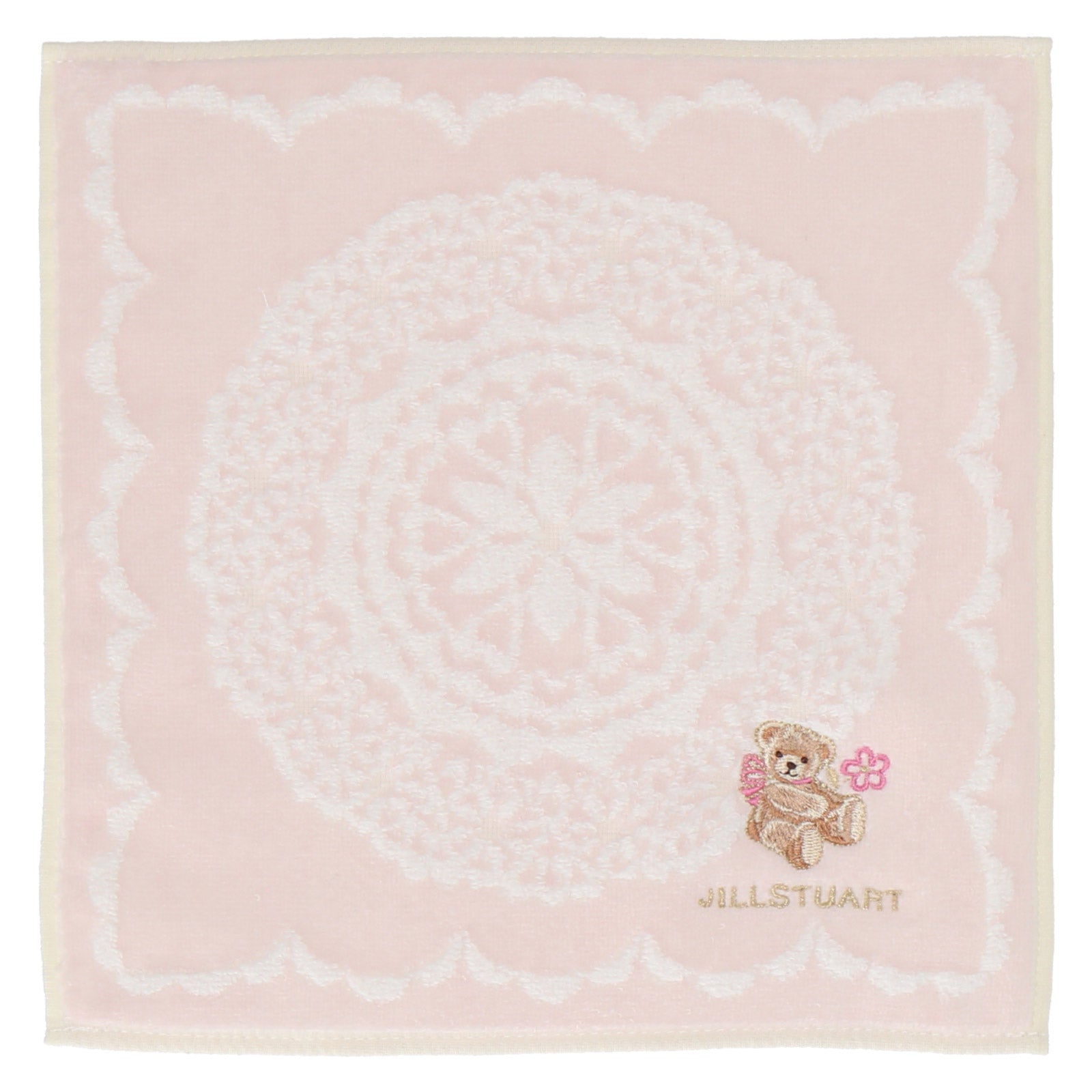 【NEW】タオルハンカチ レース&テディベア #092a ピンク
