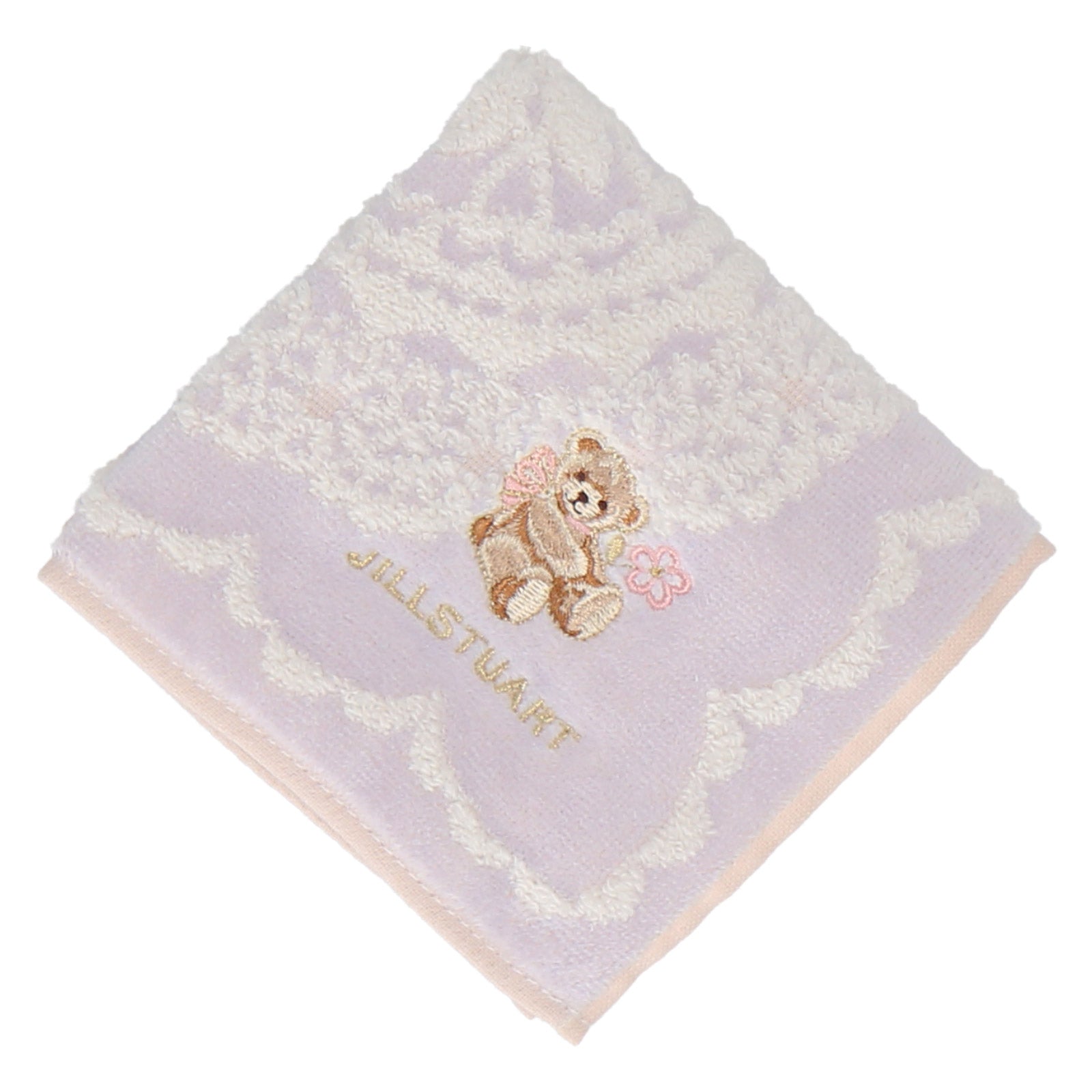 レースのデザインとベアの刺繍の組み合わせが可愛らしいタオルハンカチ。プレゼントにもおすすめな一枚です。