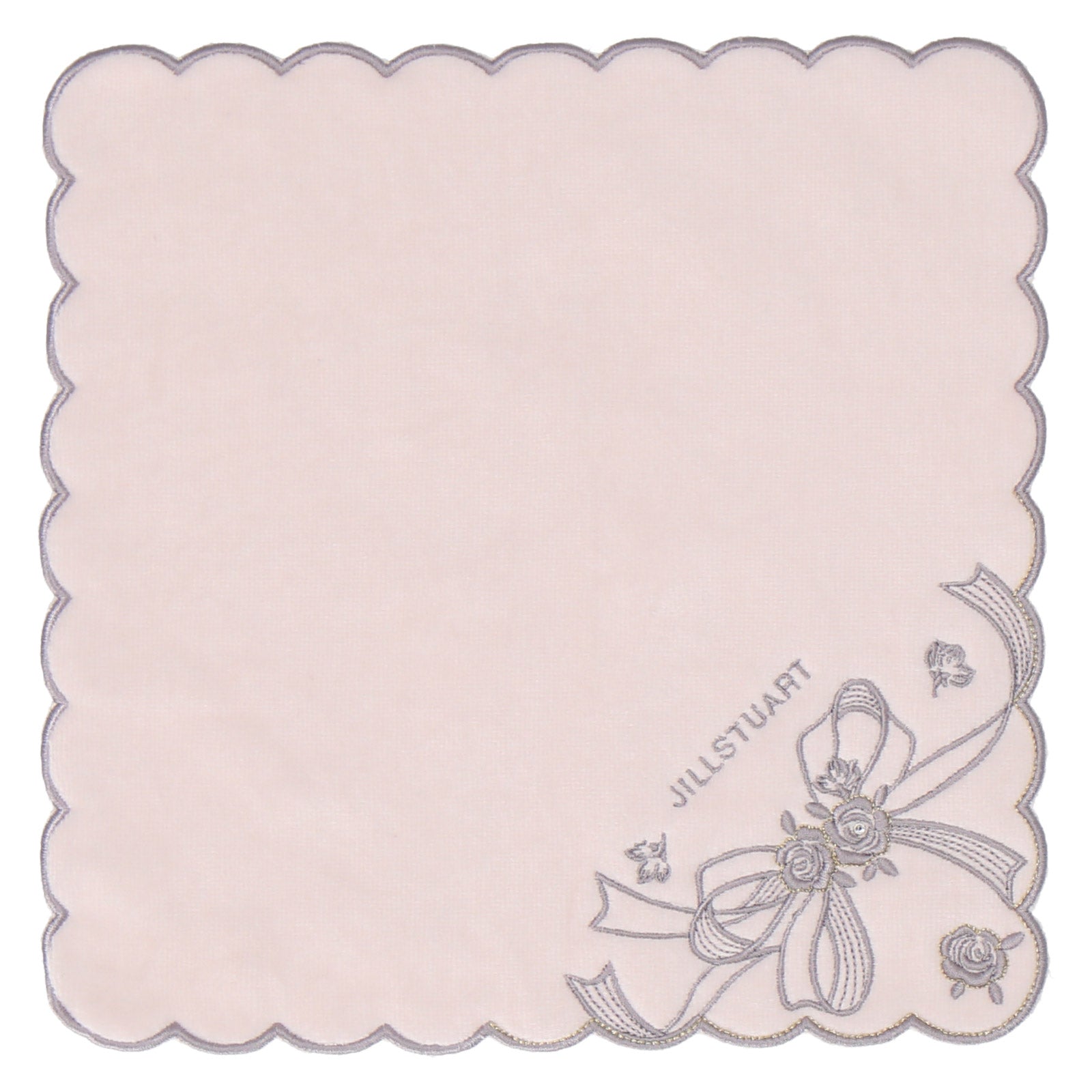 スカラップ刺繍と人気のリボンとバラの花が刺繍された豪華なデザインのタオルハンカチ。プレゼントにもおすすめです。