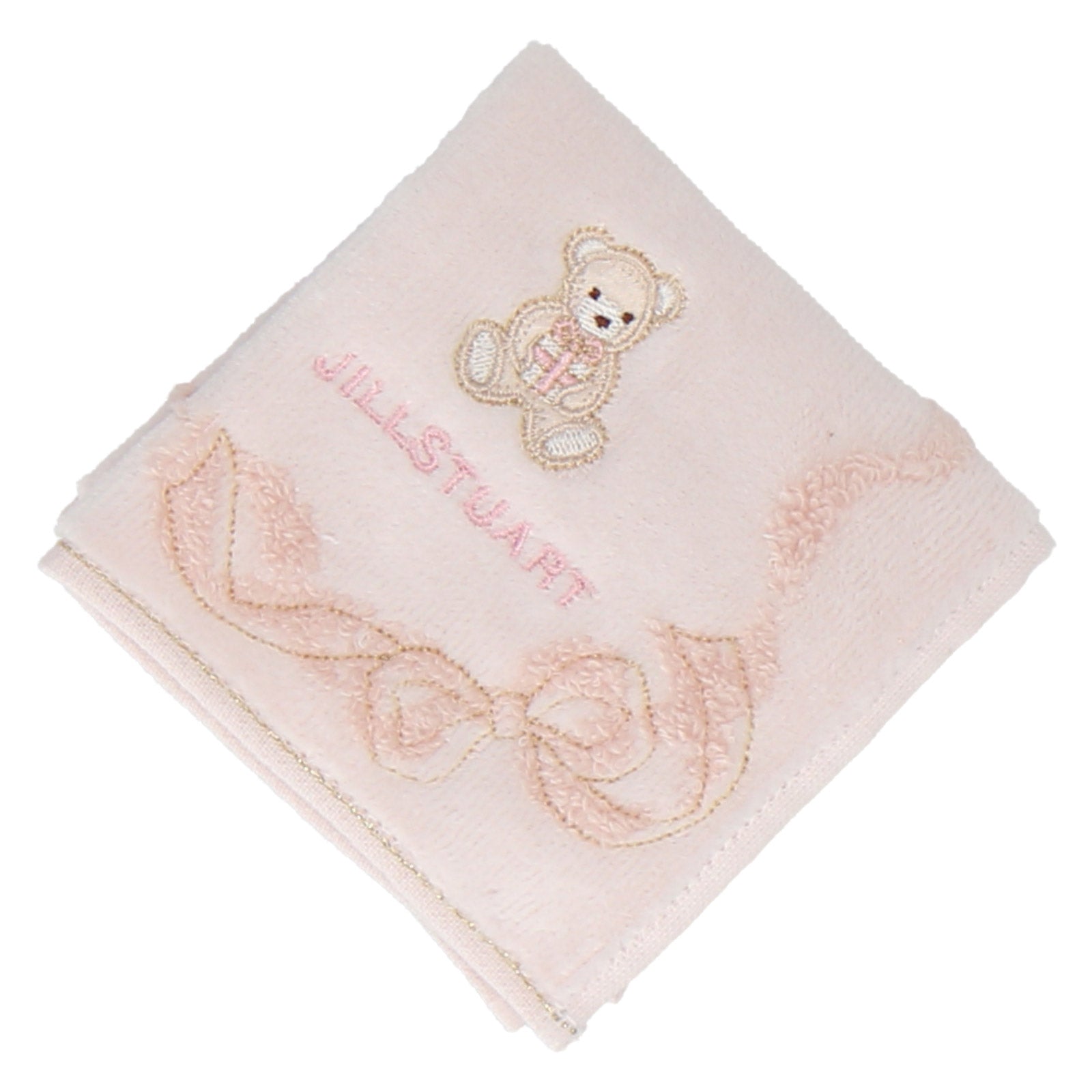 ベアのアップリケ刺繍がチャーミングなタオルハンカチ。小さなカバンでも持ち運びしやすいミニサイズもポイントです。