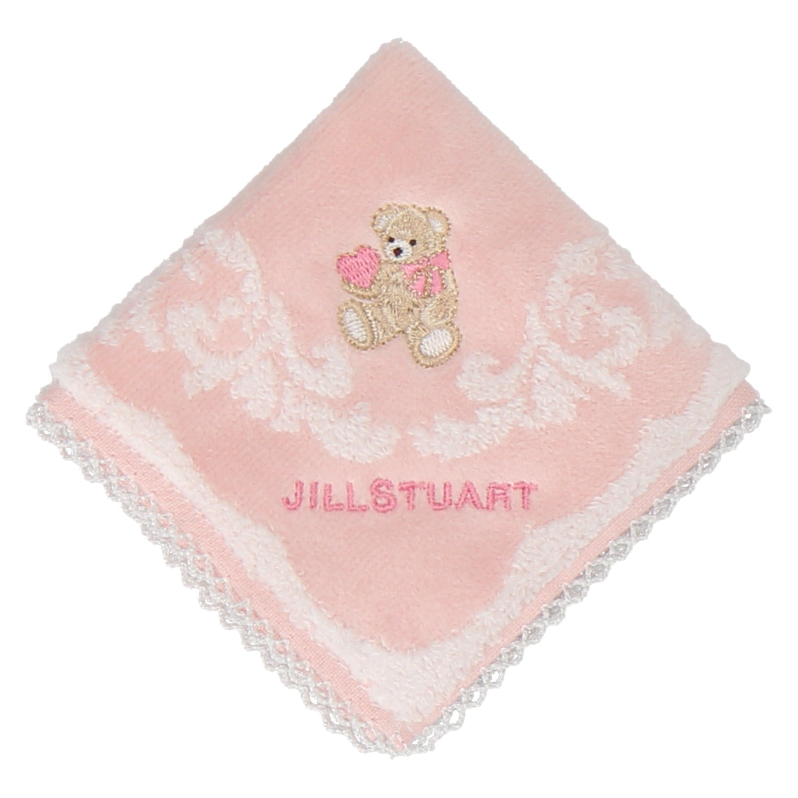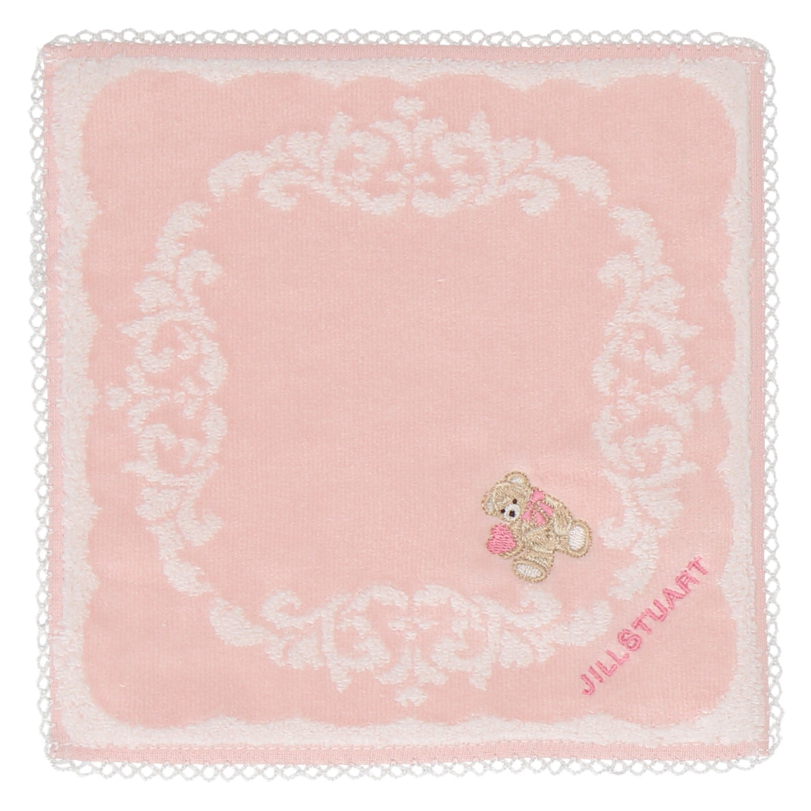 【NEW】ミニタオルハンカチ ピコットレース ハート&リトルベア #092a ピンク