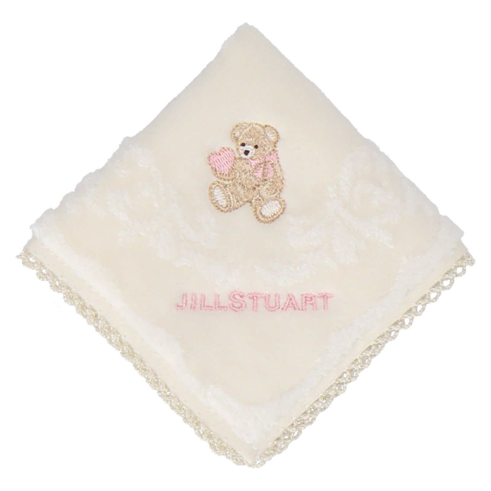 【NEW】ミニタオルハンカチ ピコットレース ハート&リトルベア #092c アイボリー