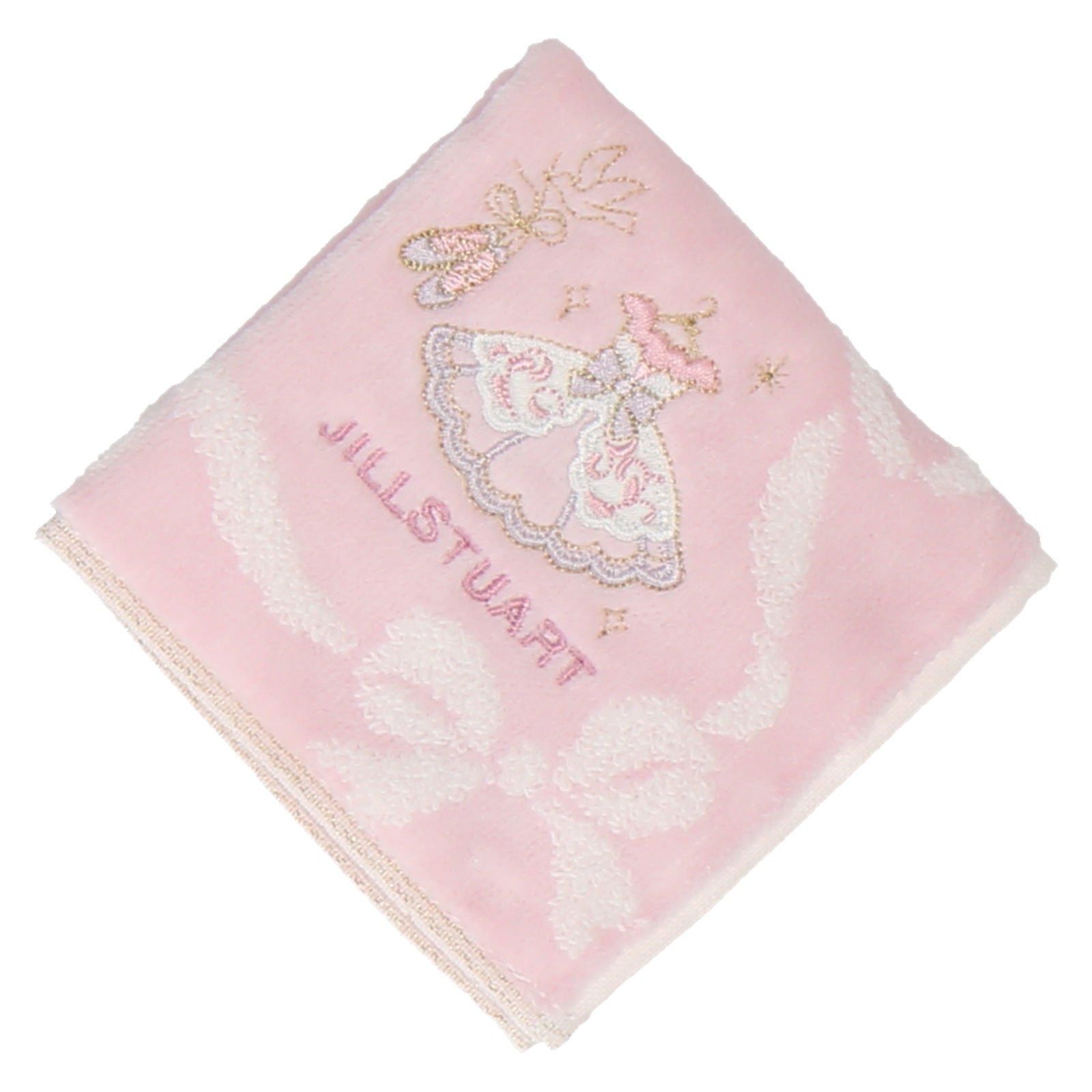 ドレスの刺繍がキュートなタオルハンカチ。小さなカバンでも持ち運びしやすいミニサイズもポイントの一つです。