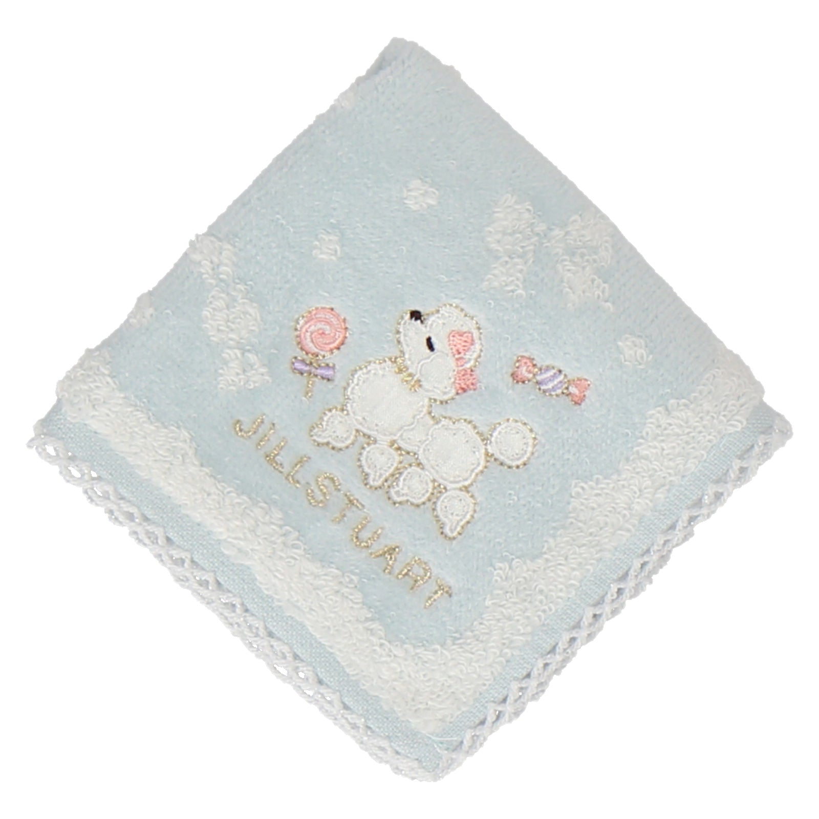 プードルとスイーツの刺繍がキュートなタオルハンカチ。小さなカバンでも持ち運びしやすいミニサイズもポイントの一つです。