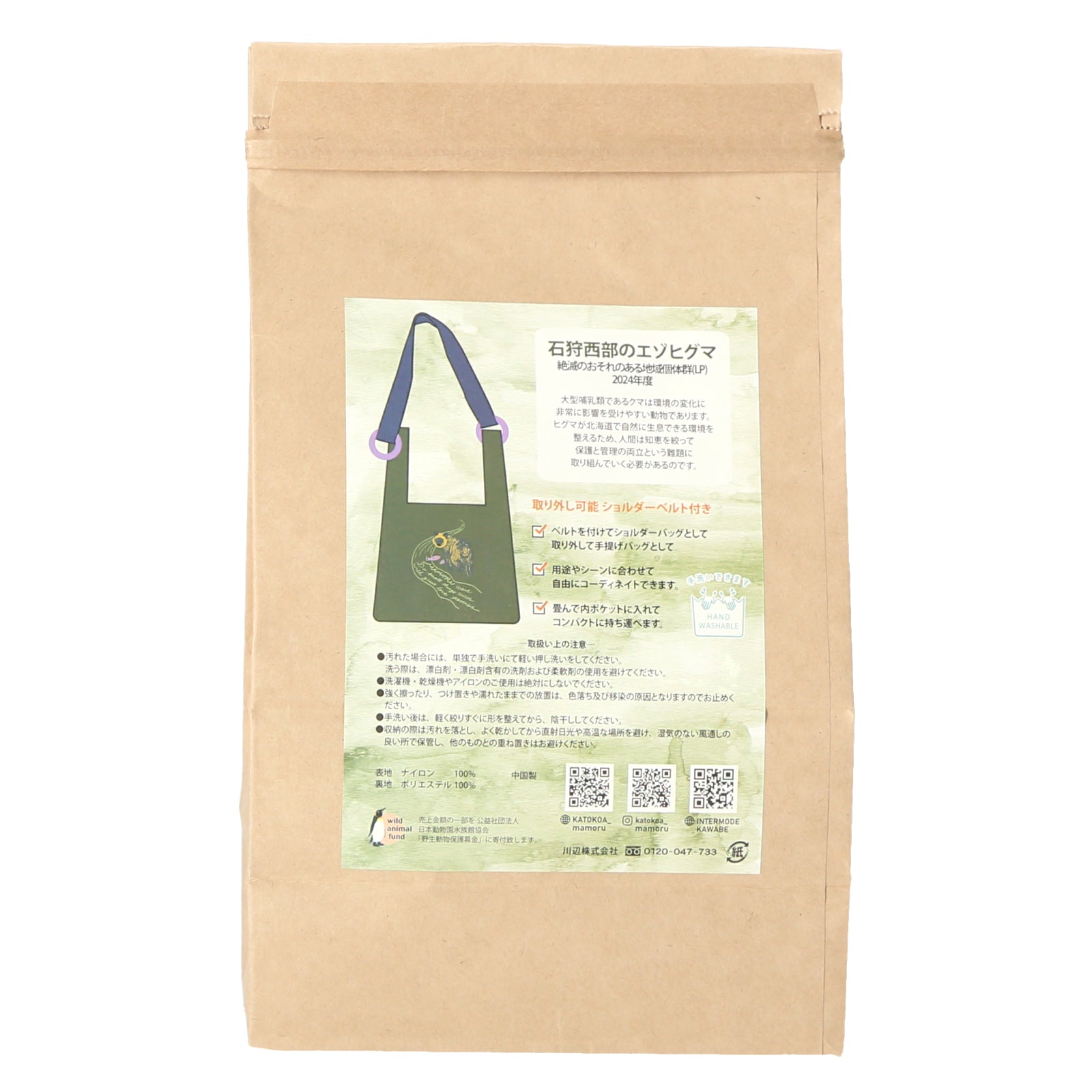 たっぷりサイズの刺繍で生きものたちを表現しました。取り外し可能なショルダーベルト付きです。ベルトを付けてショルダーバッグとして、取り外して手提げバッグとして、用途やシーンに合わせて自由にコーディネイトできます。手洗い洗濯が可能で、繰り返し・清潔にご使用頂けます。中生地には、環境に配慮した再生ポリエステルを使用しています。