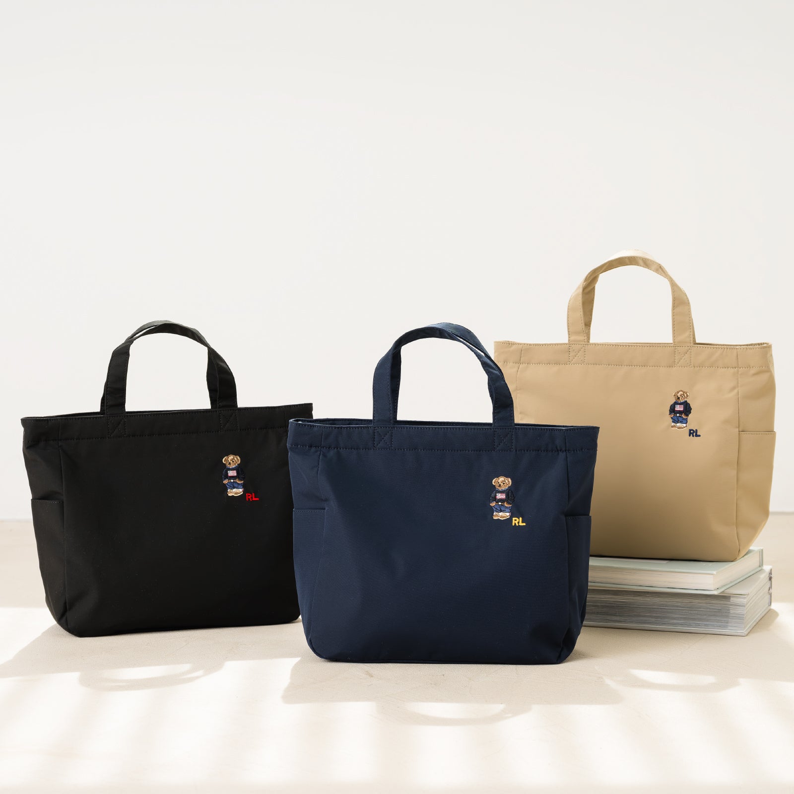 持ち運びしやすいサイズ感のショルダーバッグは、ポロベア刺繍がアクセントになっています。 ベーシックなカラーバリエーションはスタイルを選ばない3色で展開。 ショルダー部分は取り外し可能で、A4サイズも入るトートバッグとしても活躍します。 シンプルで使いやすいデザインはプレゼントとしてもおすすめです。