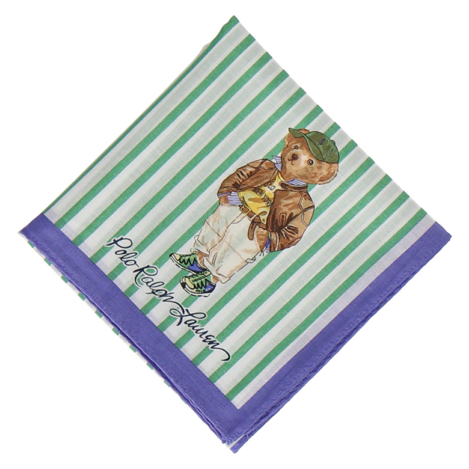 【NEW】婦人プリントハンカチ #120c ポロベア ストライプ ピーコックグリーン