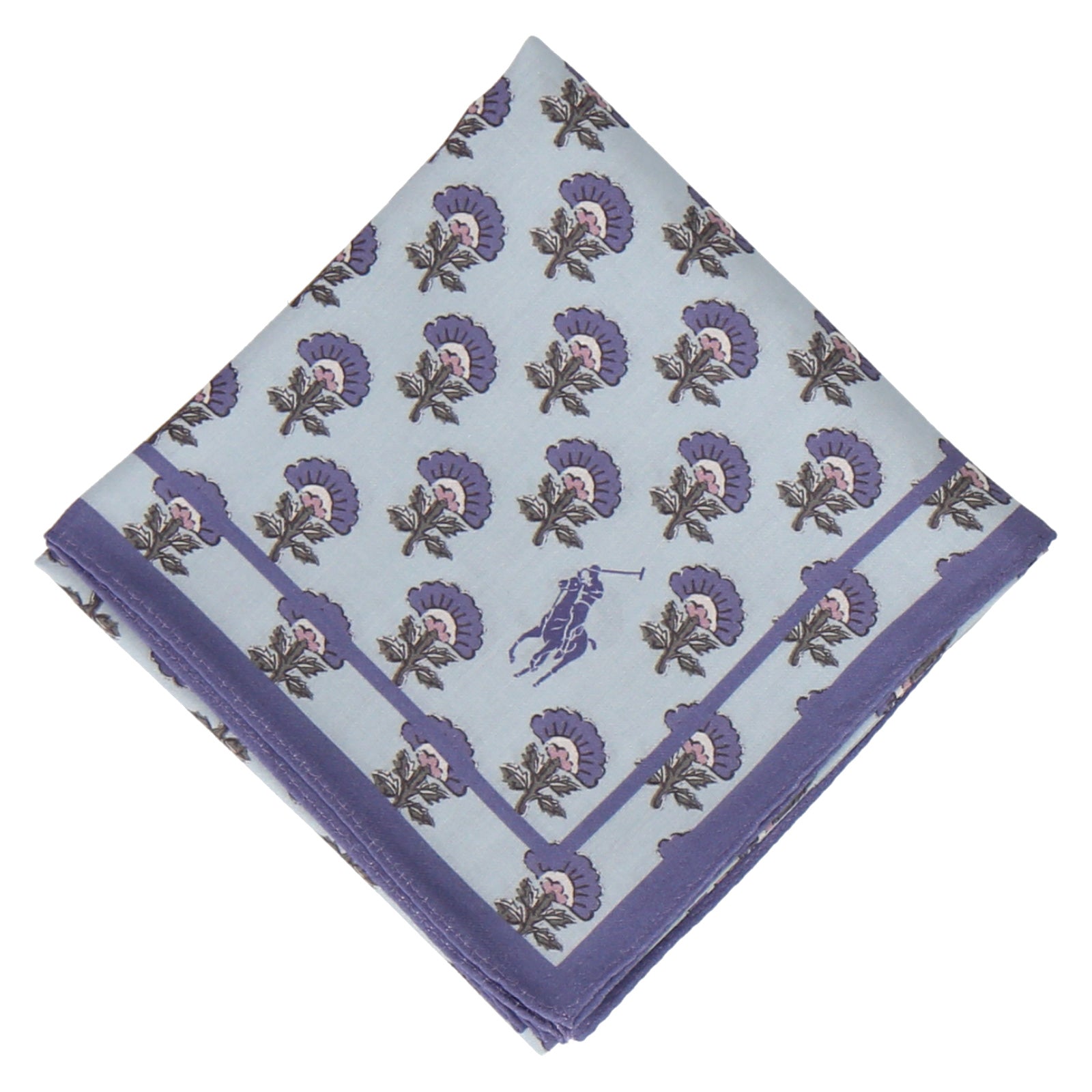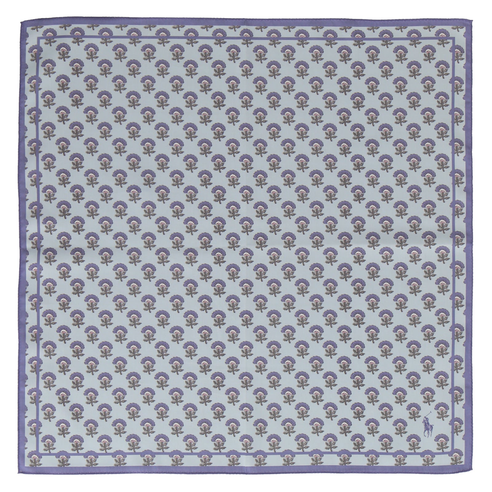 ブルーのカラーとプロバンス風のフラワーモチーフが魅力的なハンカチ。 58cmのラージサイズは使いやすいサイズ感でギフトにもおすすめです。