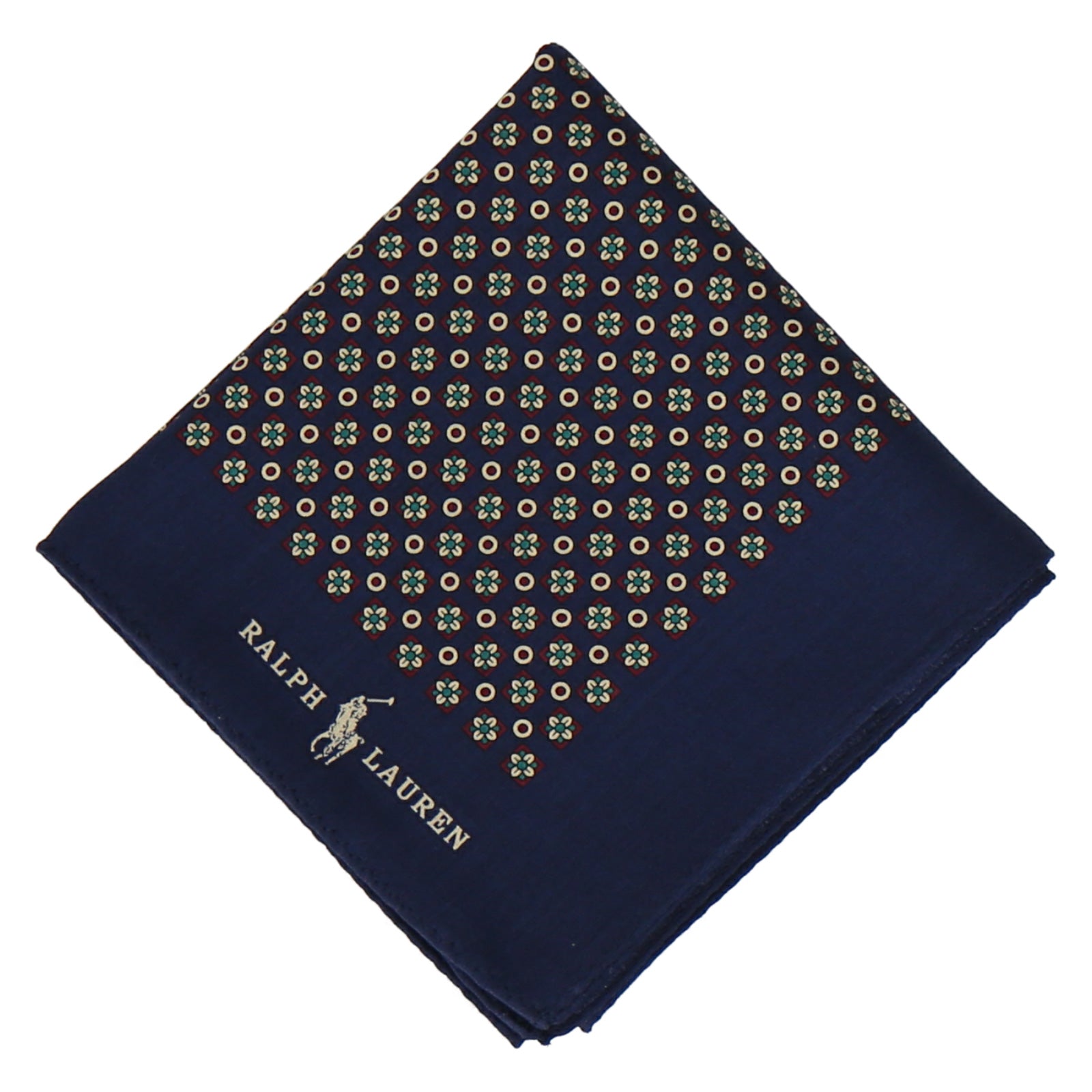 【NEW】紳士プリントハンカチ #121a ネイビーブルー