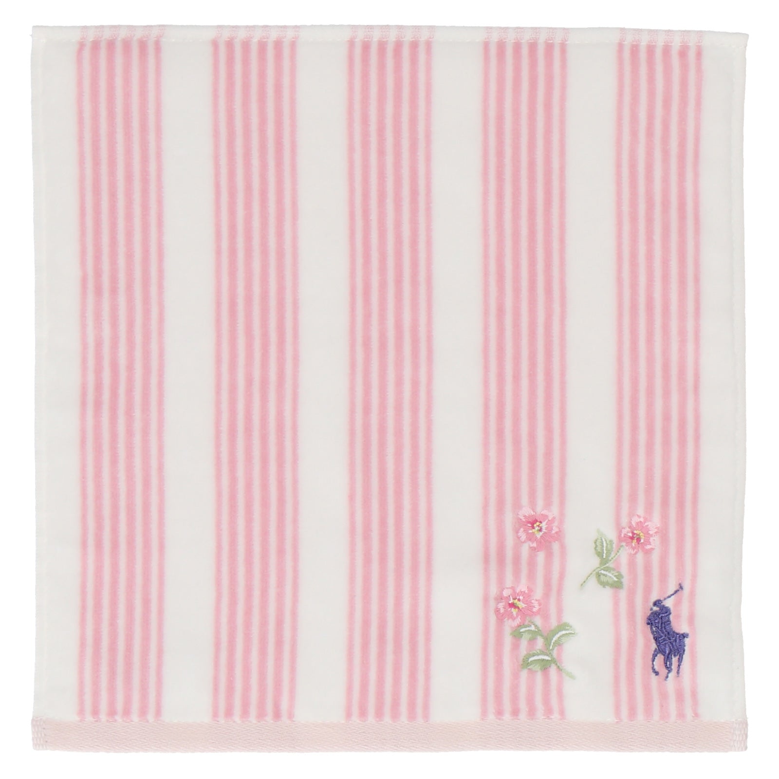 肌触りのよいコットン素材のミニタオル。 やさしいカラーのサクラモチーフとシグネチャーのポロポニー刺繍がアクセント。 デイリーに活躍するアイテムはギフトにもおすすめです。