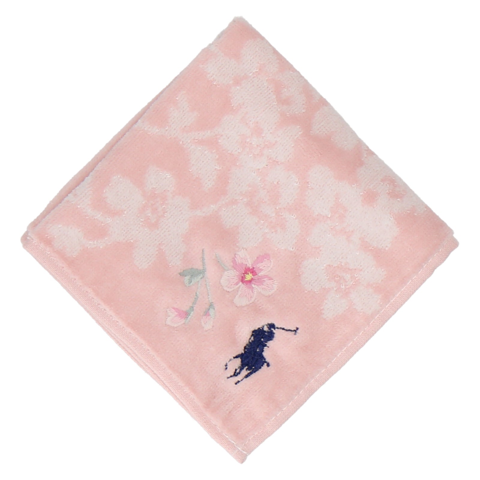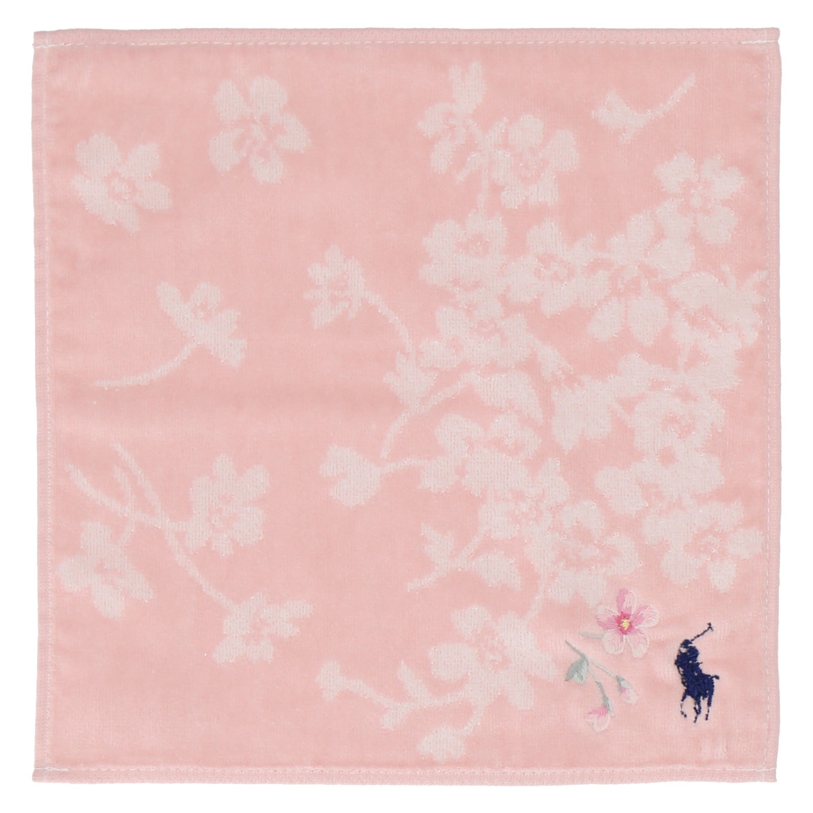 肌触りのよいコットン素材のミニタオル。 春らしいサクラモチーフとシグネチャーのポロポニー刺繍がアクセント。 デイリーに活躍するアイテムはギフトにもおすすめです。