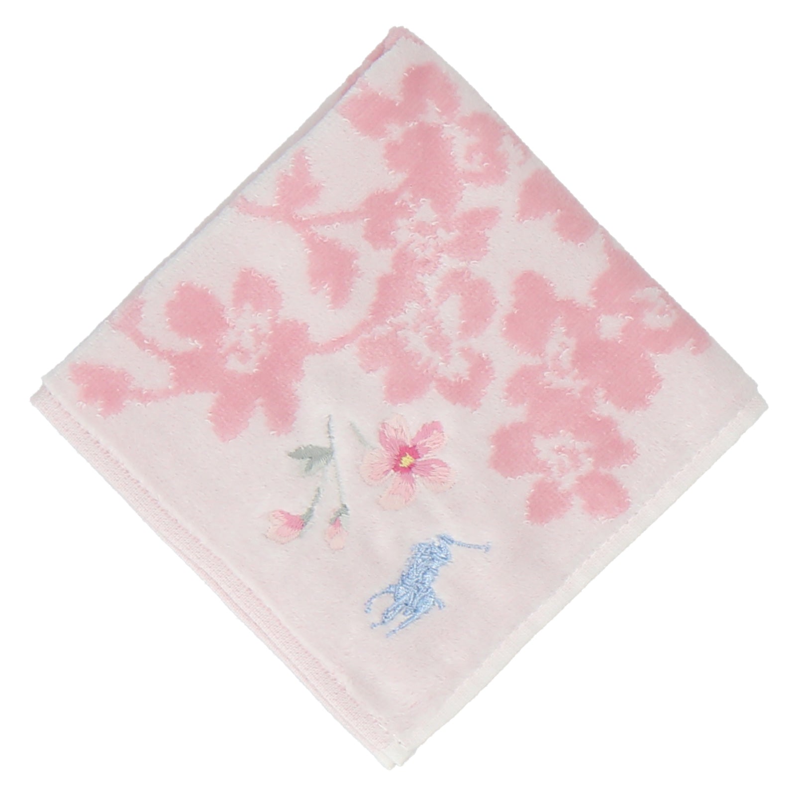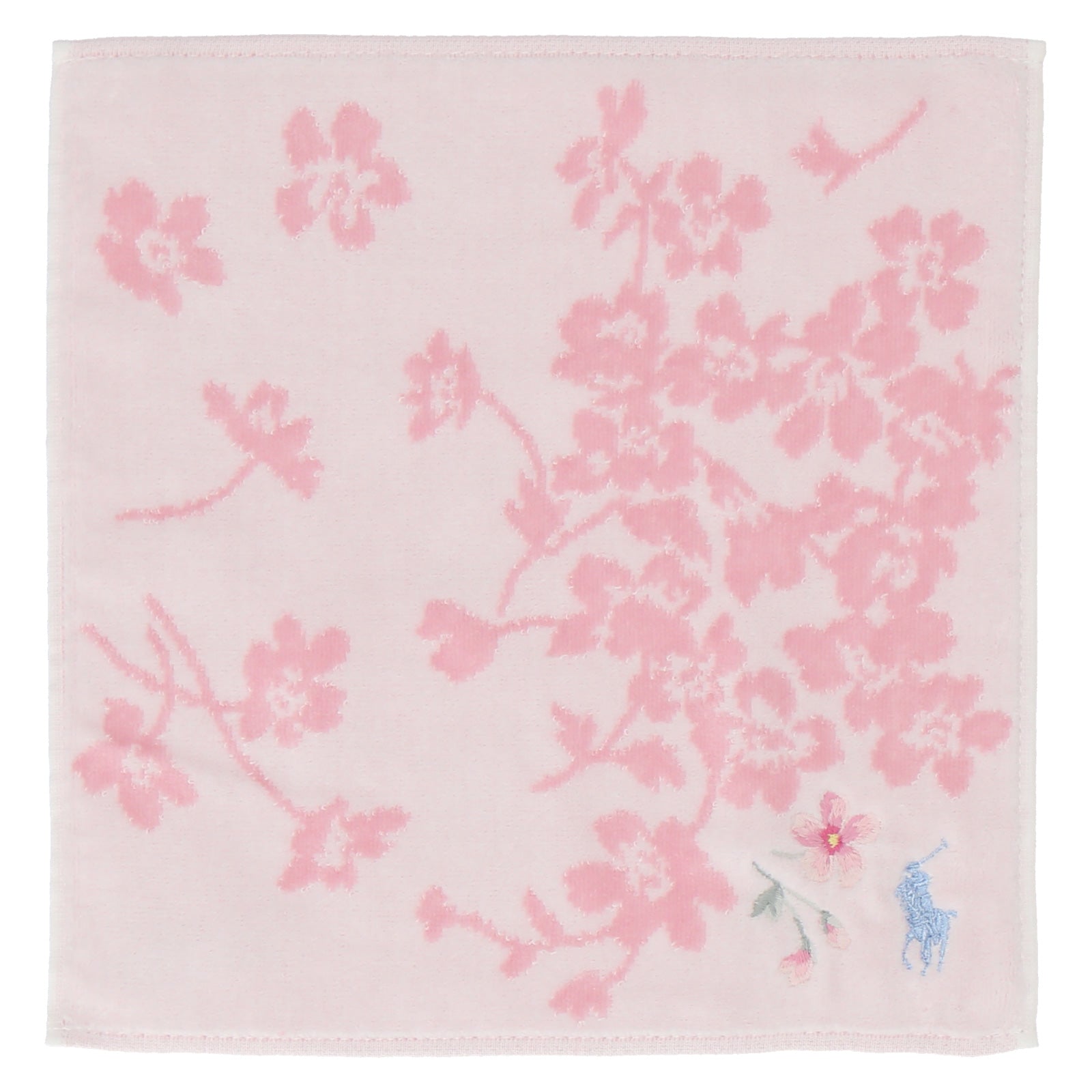 肌触りのよいコットン素材のミニタオル。 春らしいサクラモチーフとシグネチャーのポロポニー刺繍がアクセント。 デイリーに活躍するアイテムはギフトにもおすすめです。