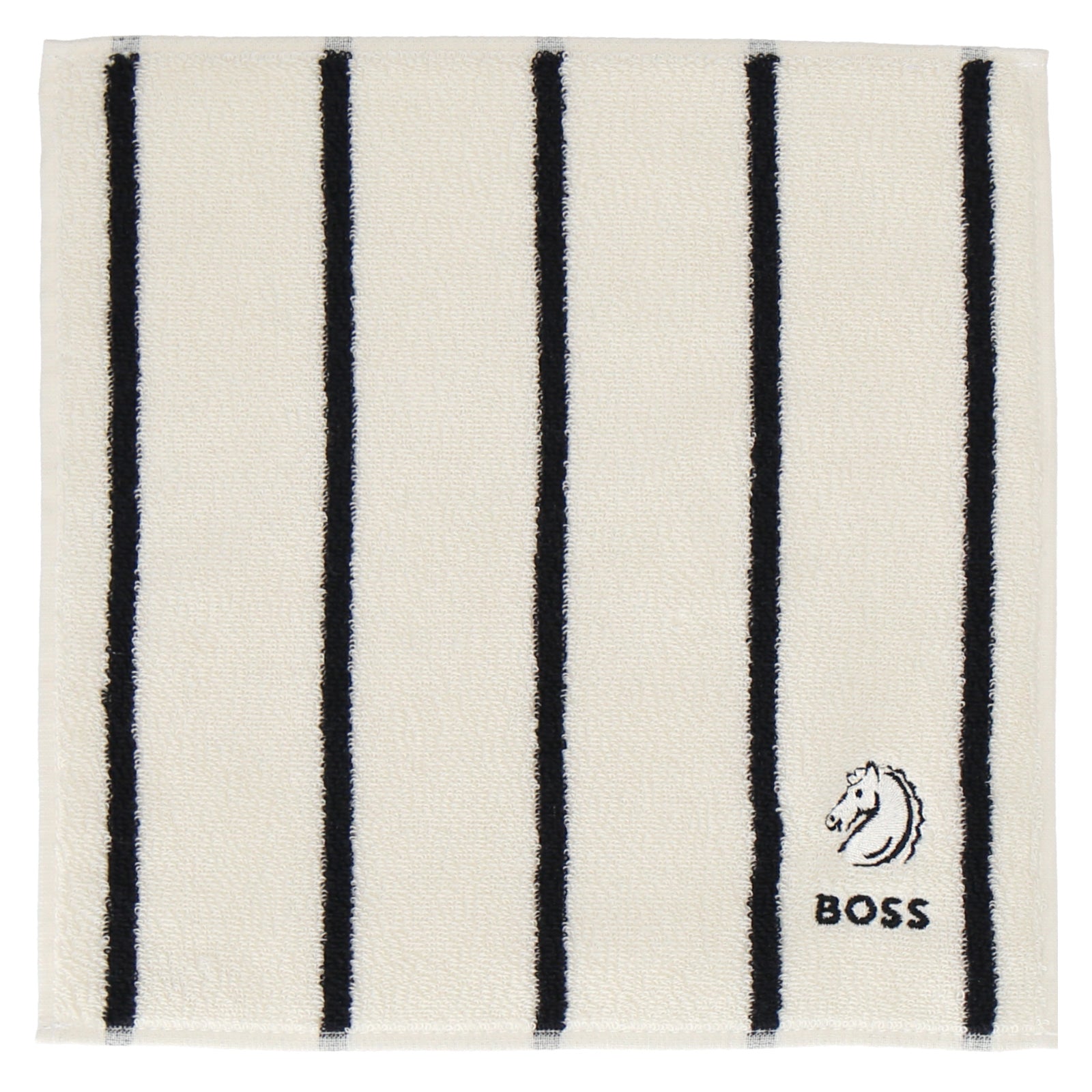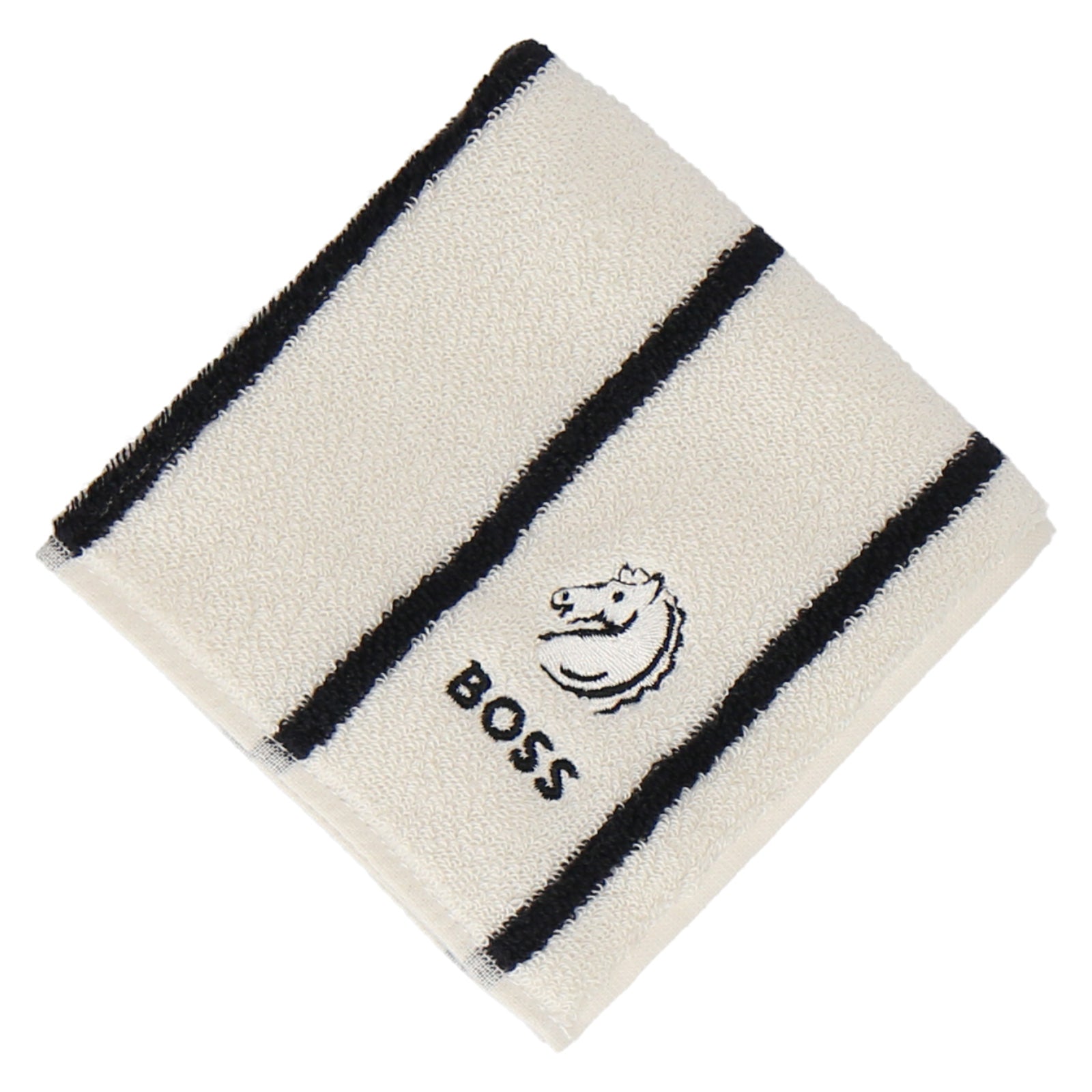 シンプルなストライプとスタイリッシュな馬の刺繍が印象的なデザイン。 風合いのいいコットン素材のミニタオルはギフトにもおすすめです。