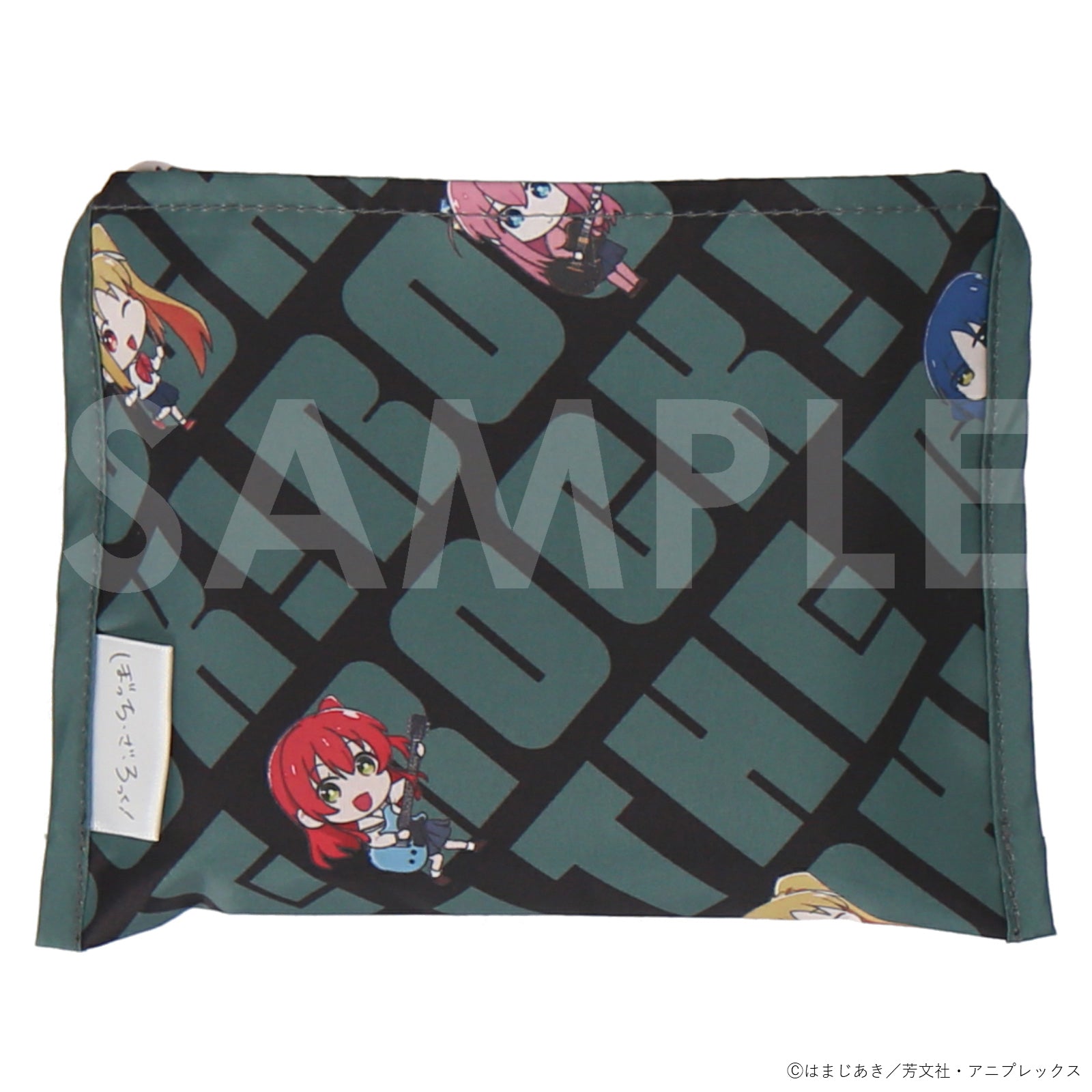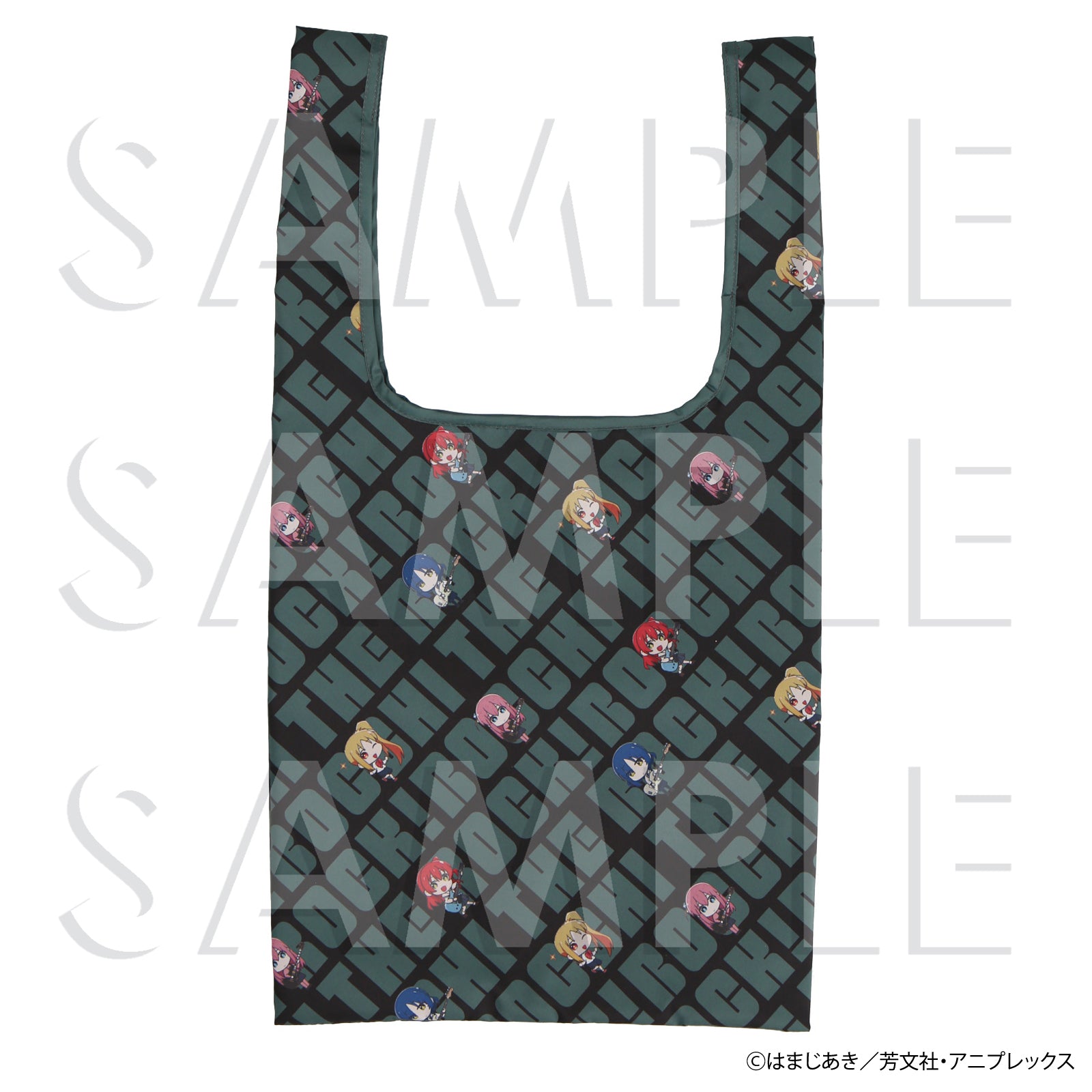 結束バンドのメンバー4人のデフォルメイラストと BOCCHI THE ROCK!のロゴ総柄がプリントされたエコバッグ。 折りたたんで収納できるポケット付きで、お買い物にもお出かけのサブバッグにもおすすめです。